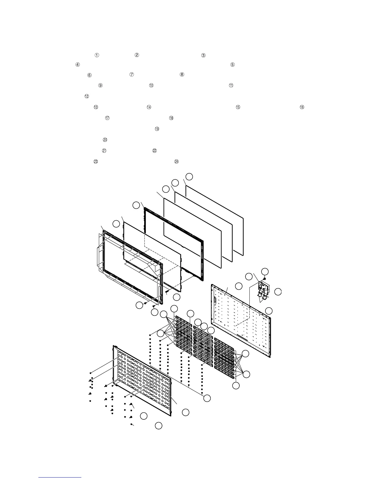 NOTE: A clean booth is required for repair of the component units and/ or parts (LCD Panel HIRAKI, LED PWB etc.) inside the LCD panel module