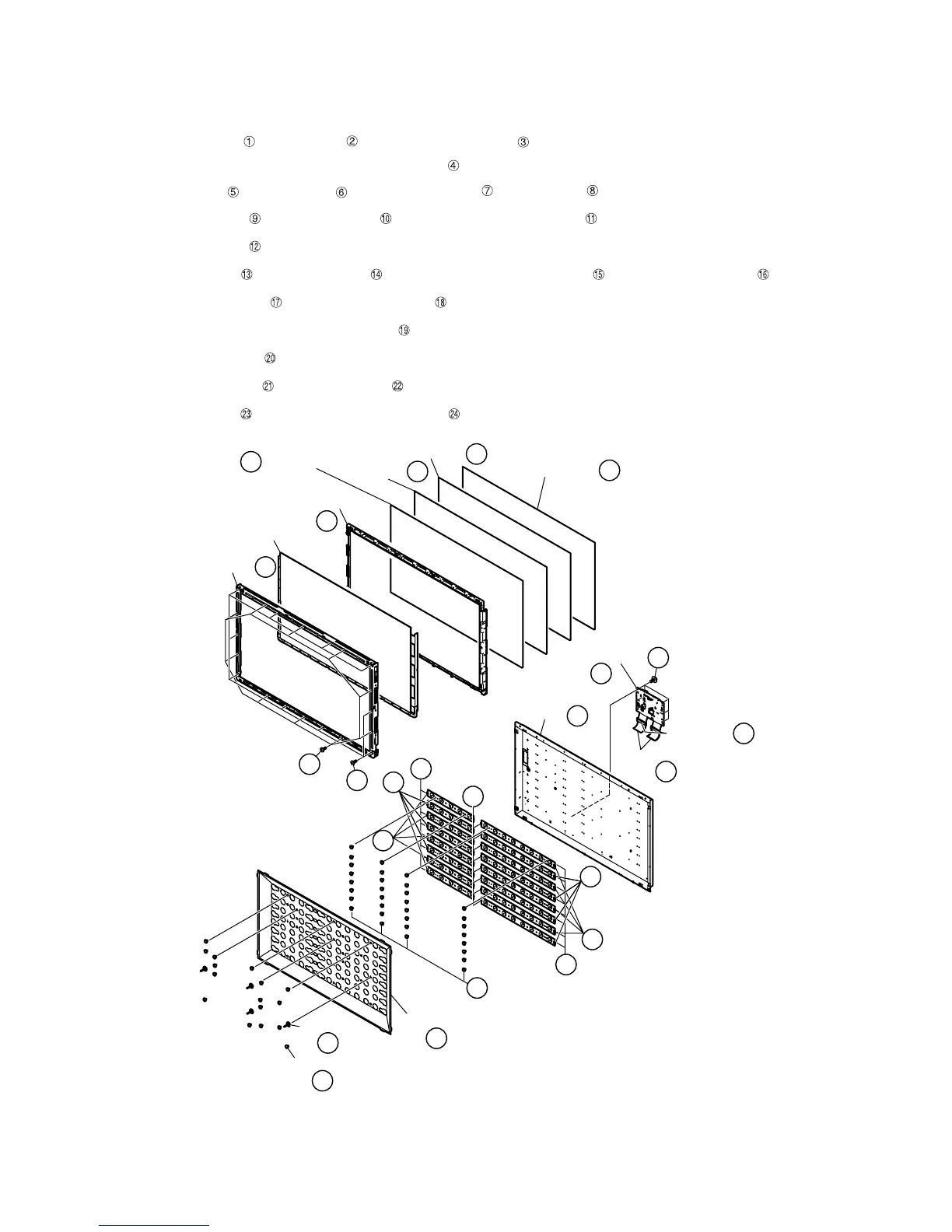 7. Removing of Bezel Ass’y, Panel Chassis Ass’y, Optical Sheet, Lens Sheet, Diffusion Plate, Back Light Chas-