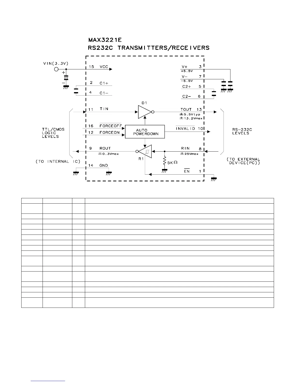 13 T_OUT O RS-232 Transmitter Outputs