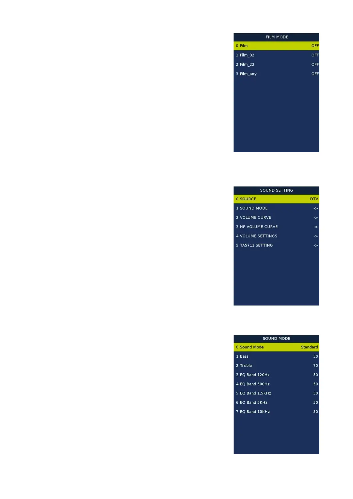 SOUND MODE: BASS, TREBLE, EQSettings.