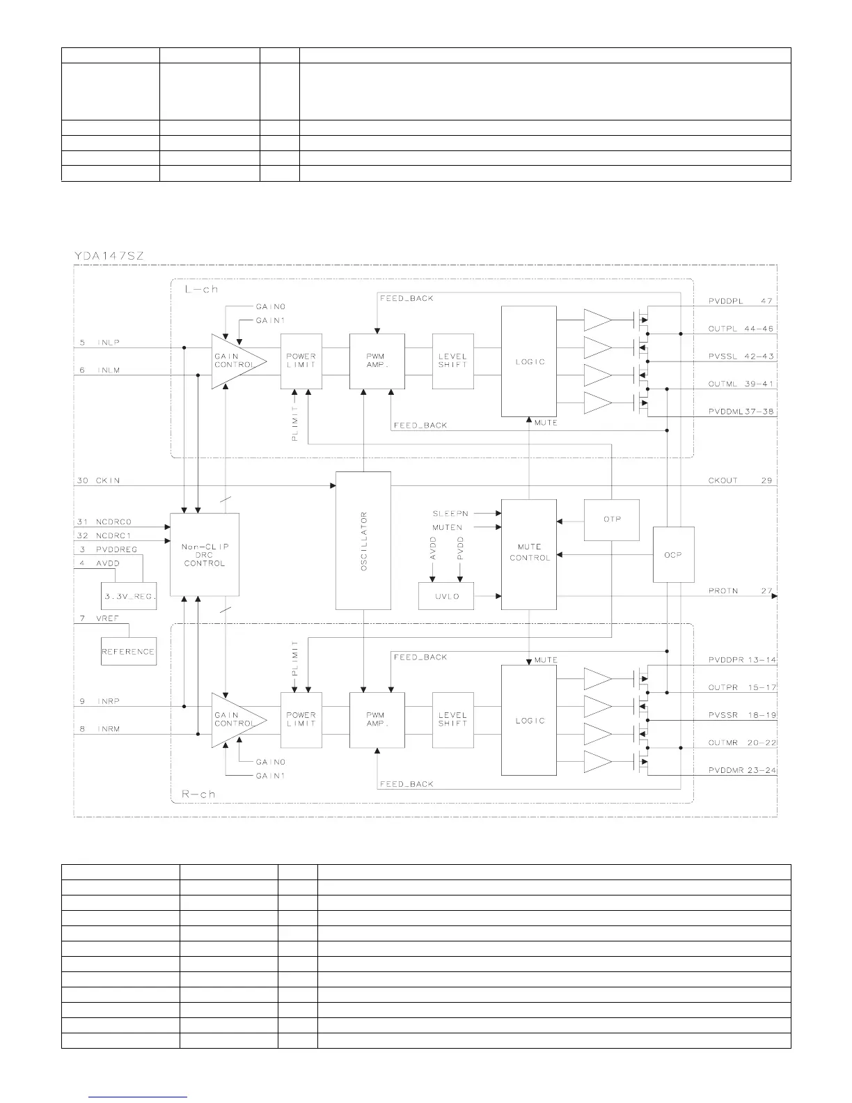 13, 14 PVDDPR — Power terminal for digital amplifier output (Rch+)