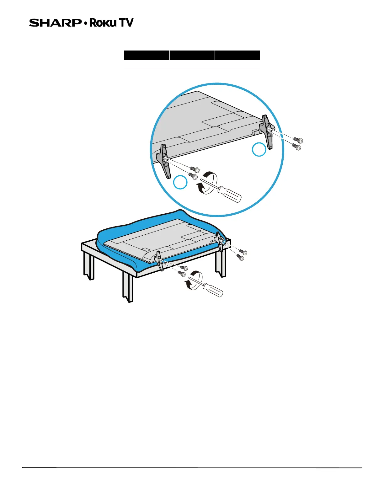 towards the front of the TV. Secure the stands to the TV with the four provided screws.