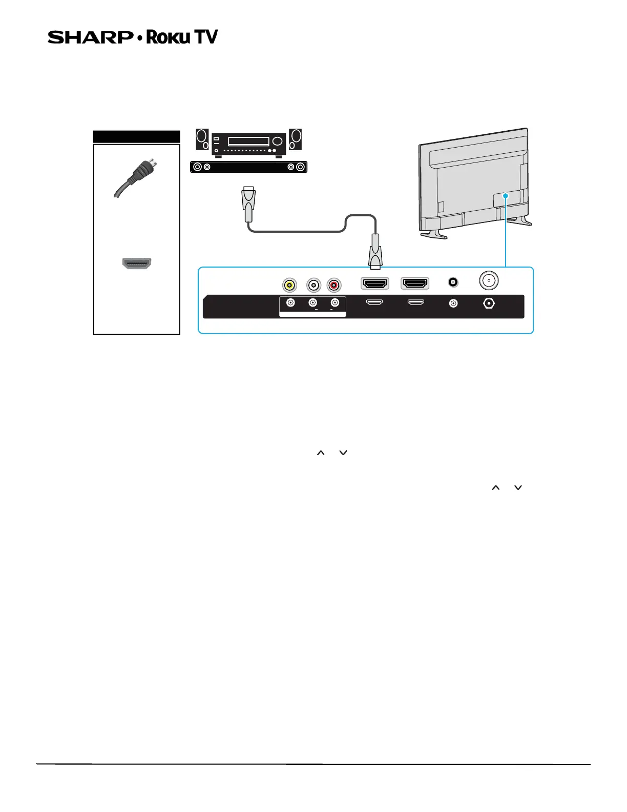 2 Connect an HDMI® cable (not provided) to the HDMI1(ARC) jack on the back of your TV and to the HDMI IN jack on the