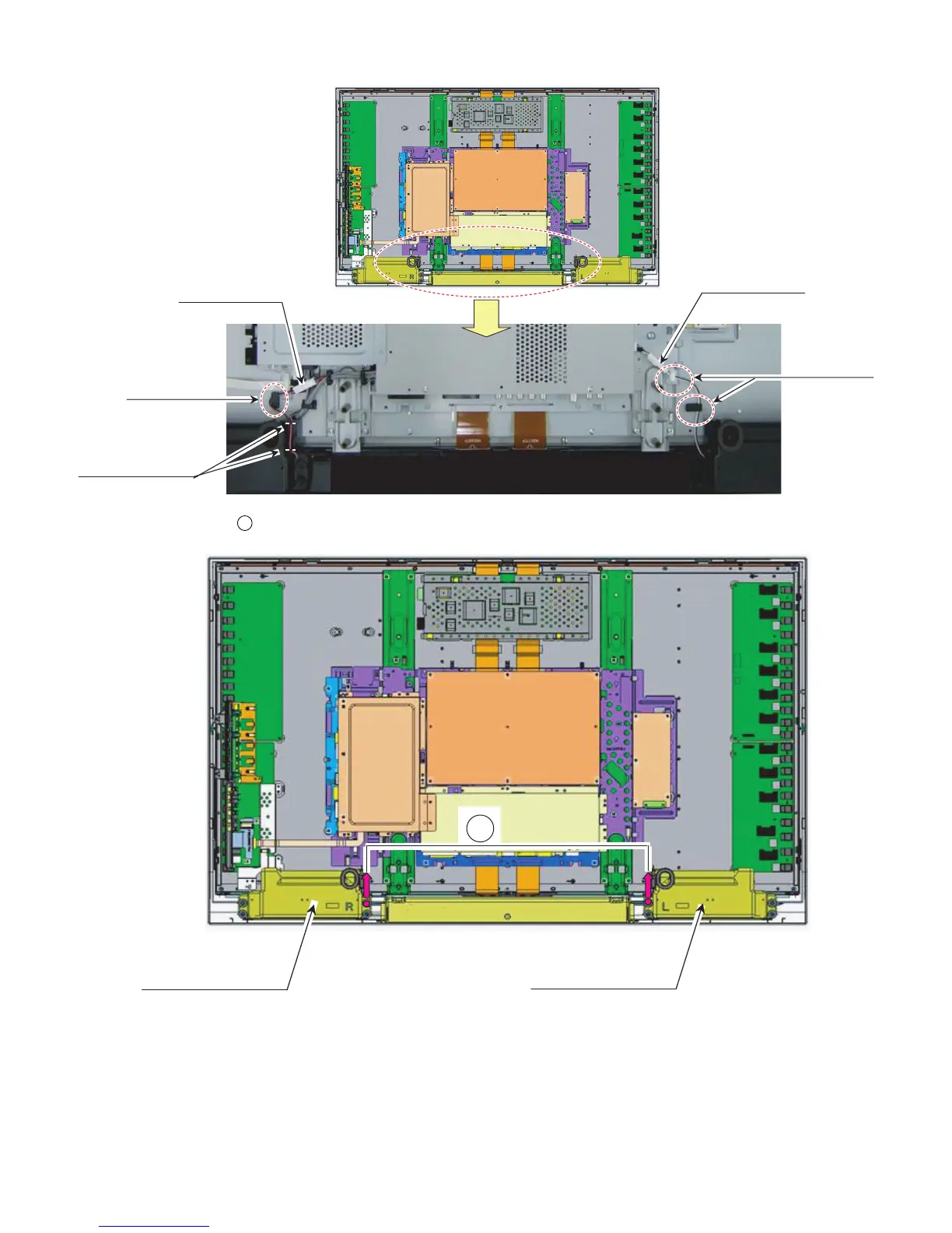 3. Remove the 2 lock screws . and detach the Speaker L/R.