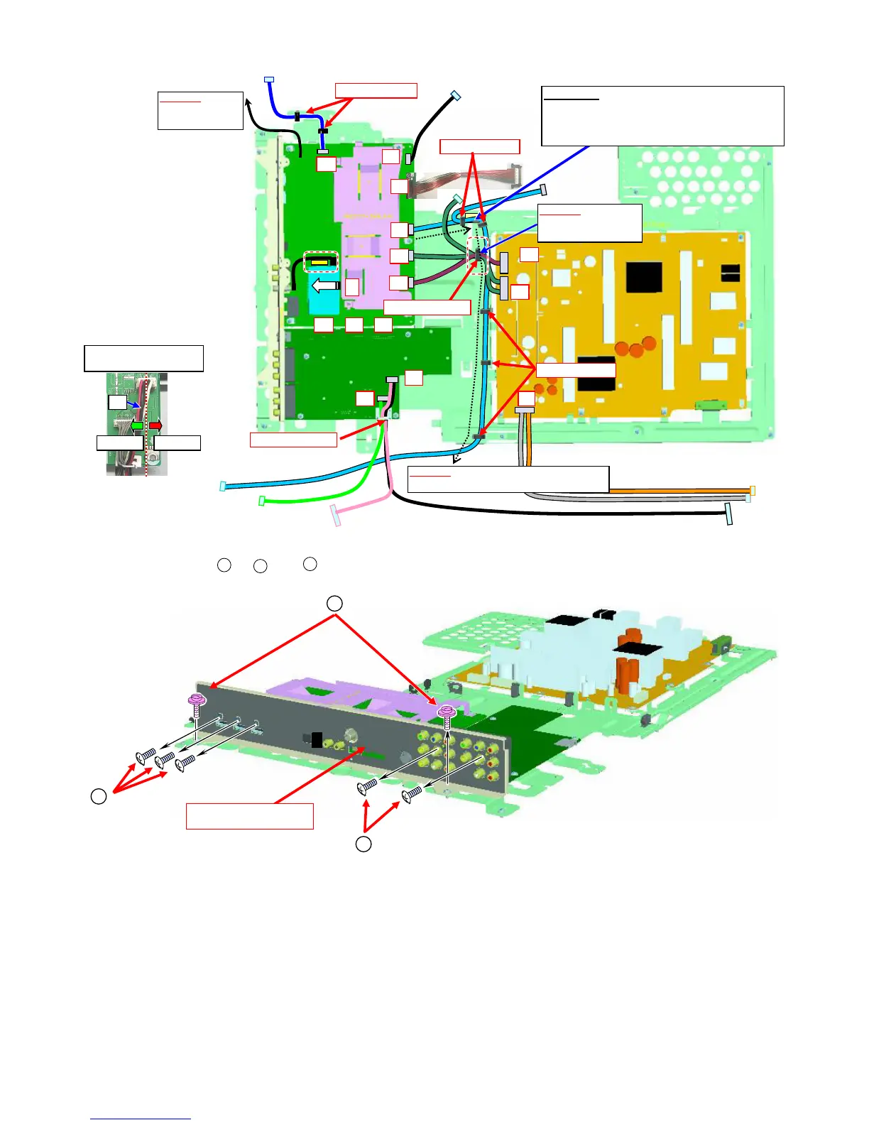 21.Remove the 7 lock screws , and , and detach the AV Terminal Angle Ass’y.