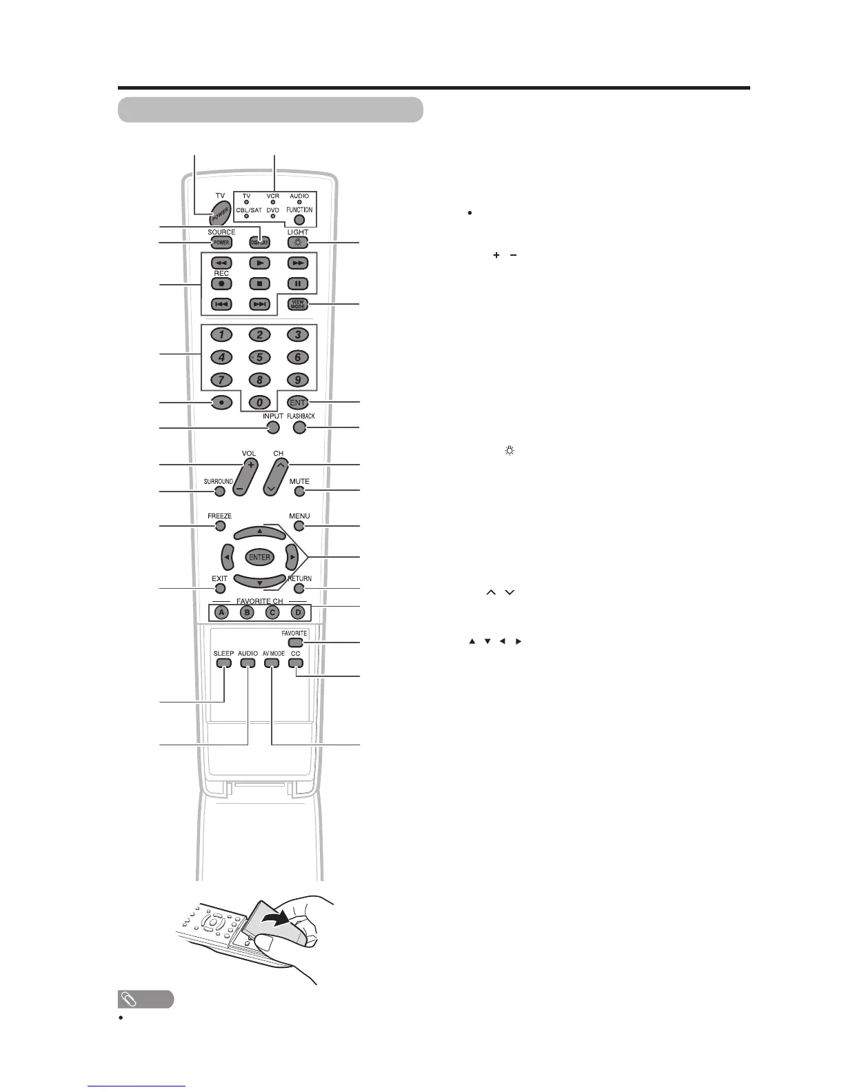 SAT, VCR, DVD and AUDIO operation. Indicator lights up