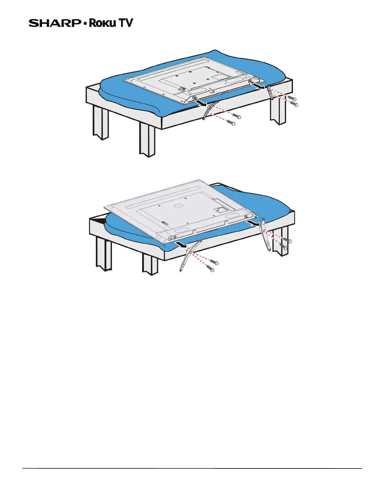 2 If the TV stands are installed, remove the two screws that secure the stands to your TV.