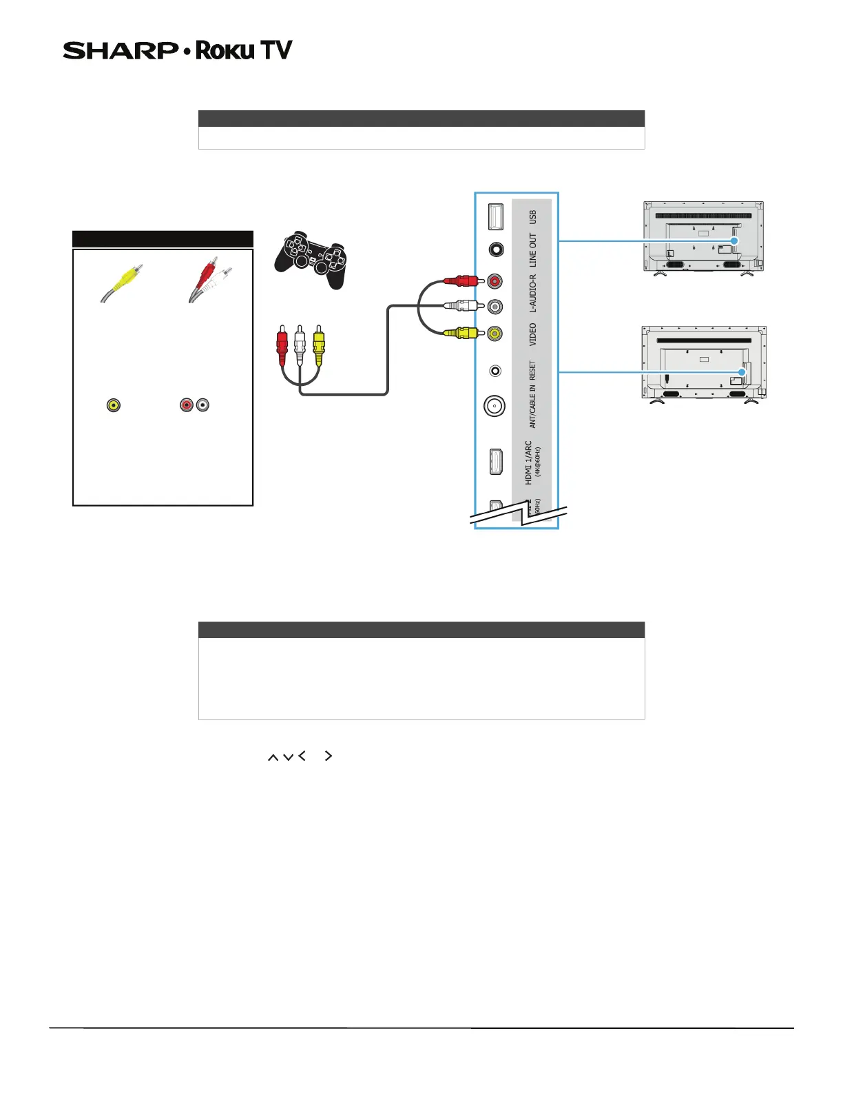 2 Connect the game console’s AV cable (not provided) to the VIDEO jack and L and R AUDIO jacks on your TV and to the
