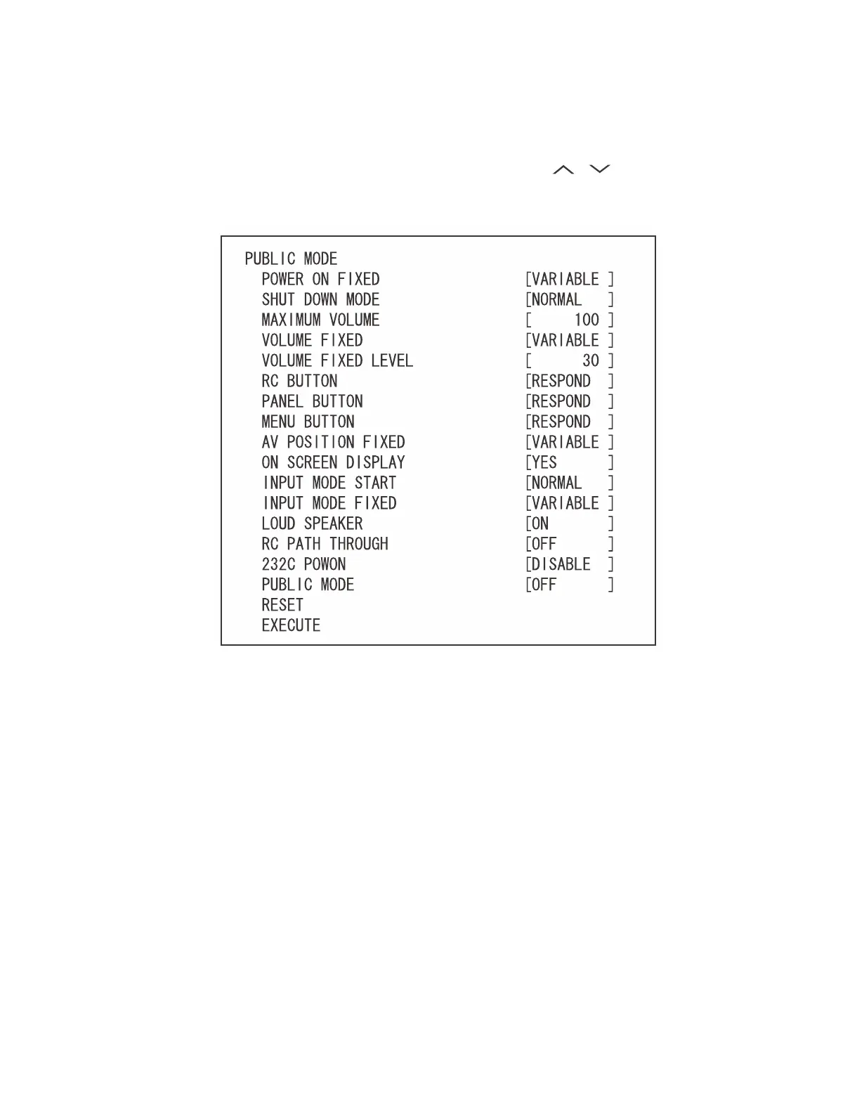 x To save new settings, keep the cursor at “EXECUTE” and use “ENTER” key (remote controller and set).