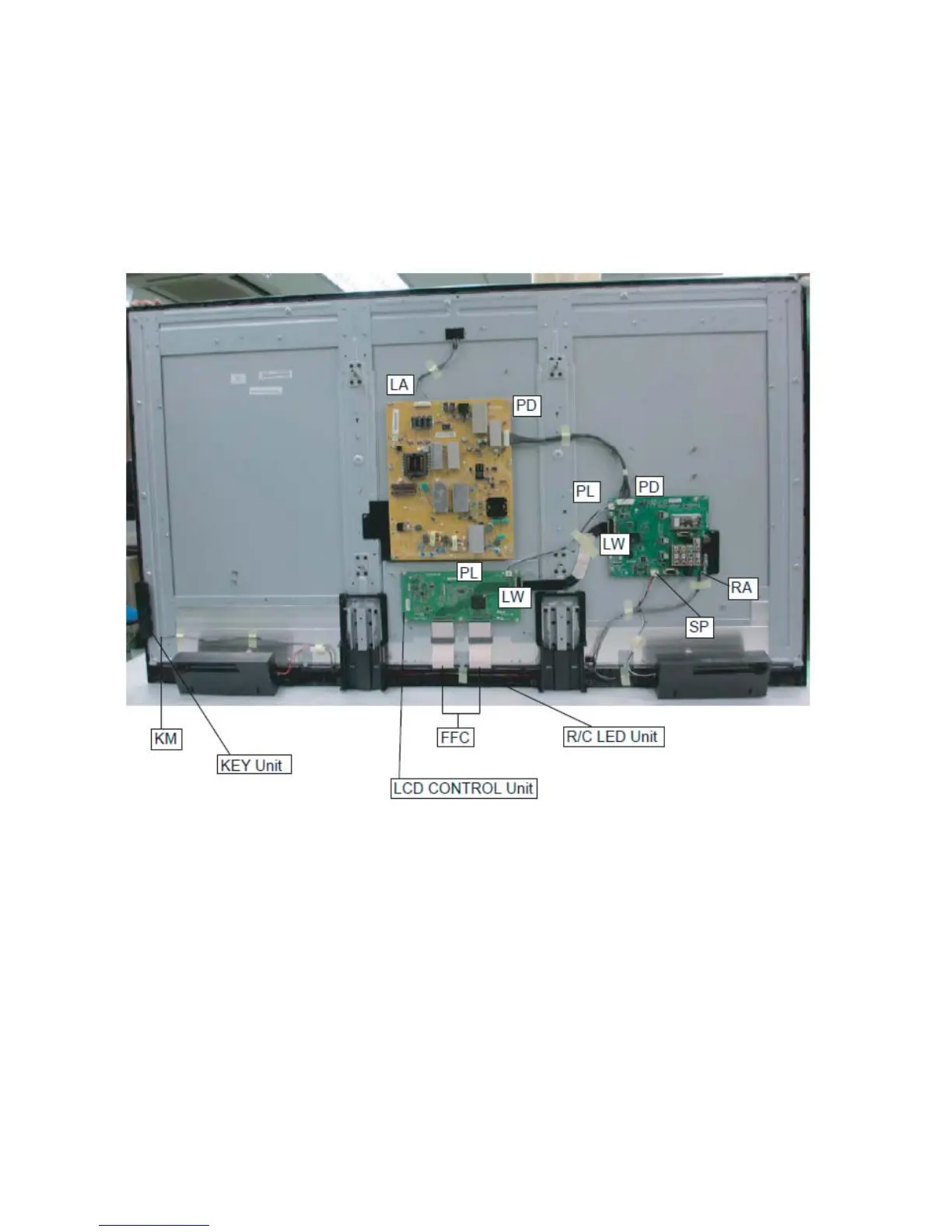 3. Disconnect the following connectors from the LCD CONTROL Unit. (LW, PL, FFC)
