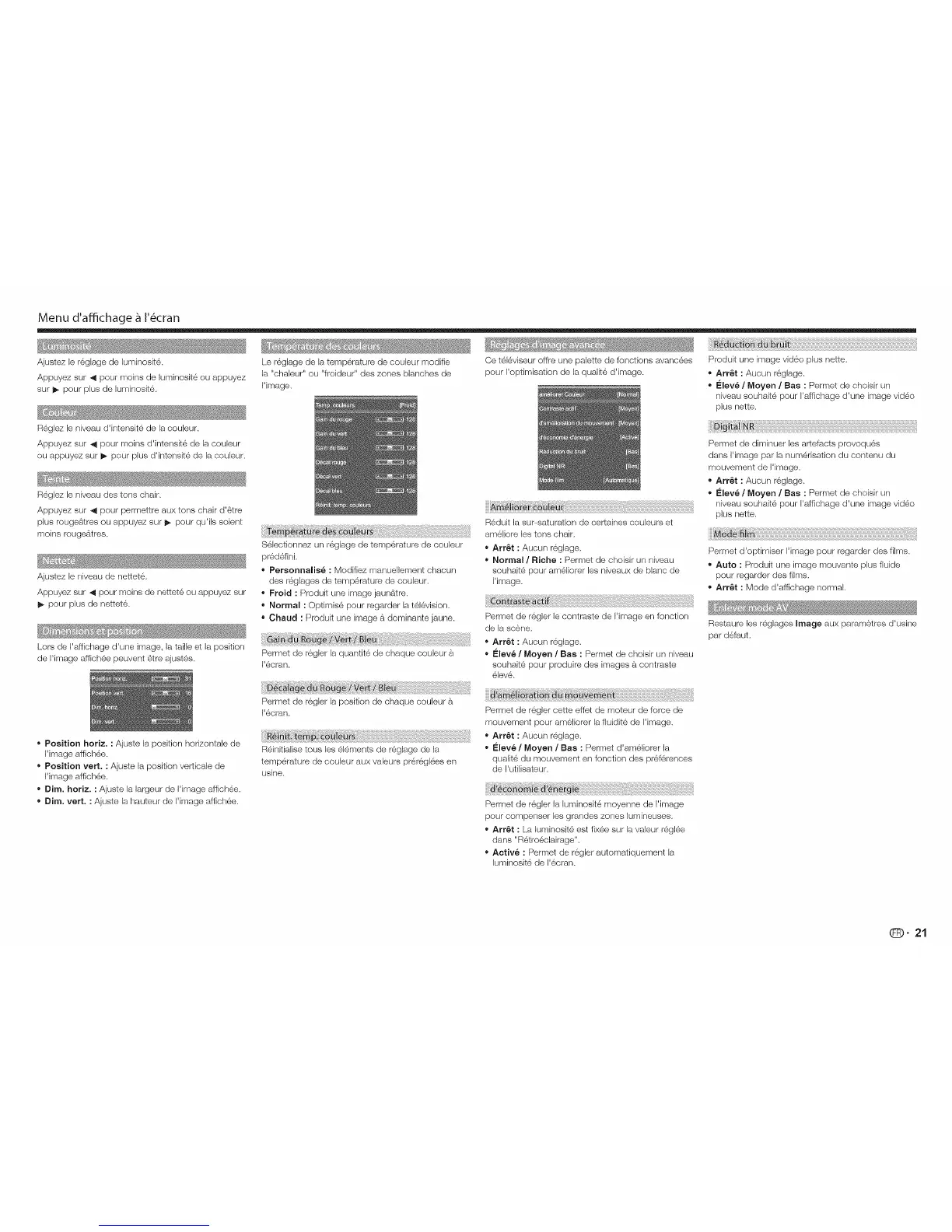 " Dim. horiz. : Ajuste la largeur de I'image afflch6e.