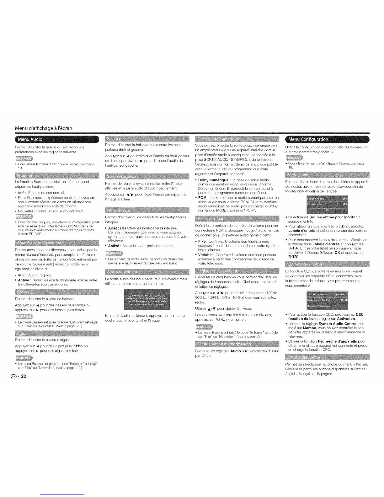 Vous pouvez emettre la sortie audio num6rique vers D6finit la configuration op6rationnelle du t616viseur et