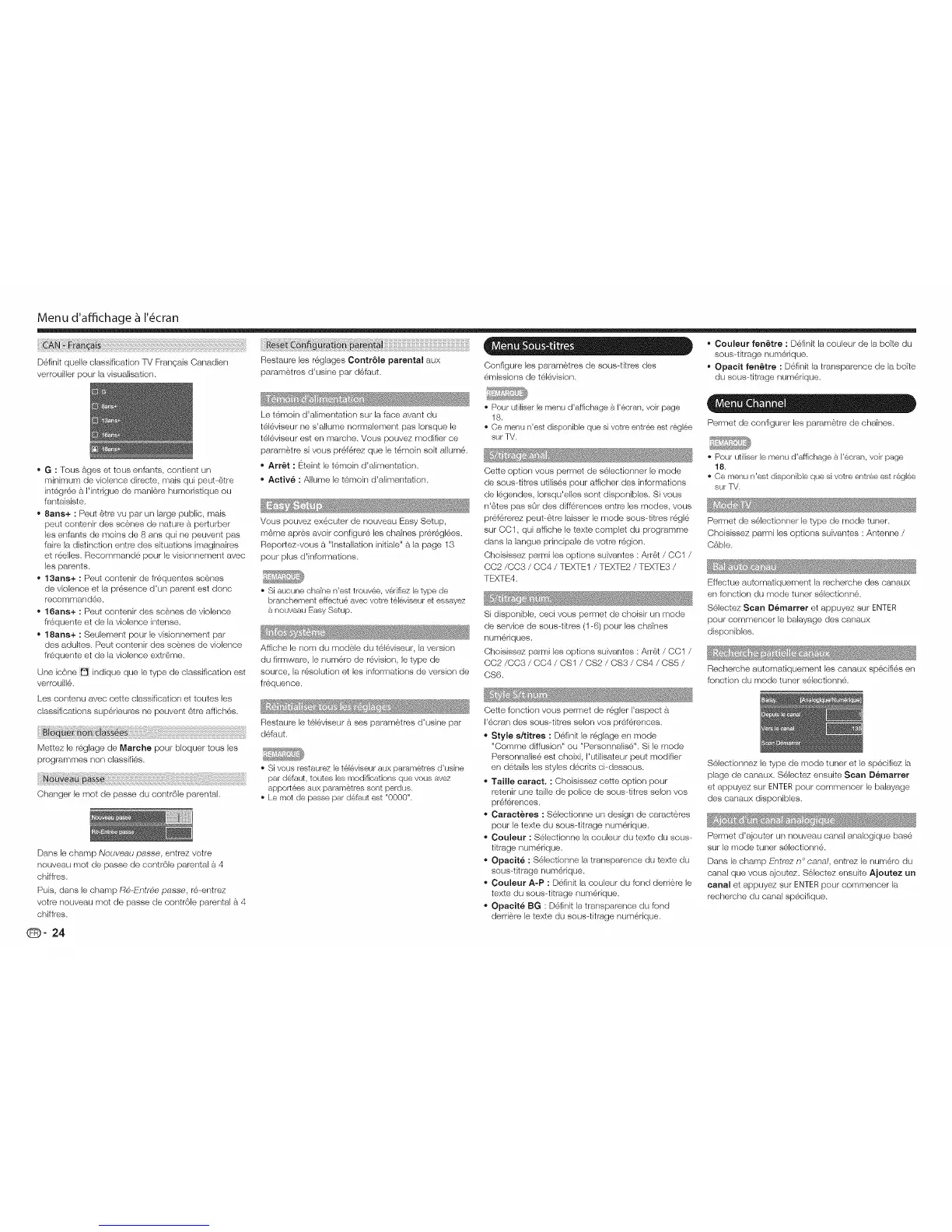D6finit quelle classification TV Frangais Canadien Restaure les r6giages Contr6le parental aux Configure [es parametres de sous--titres des • Opacit fen_tre : Dd_finitla transparence de la b_te