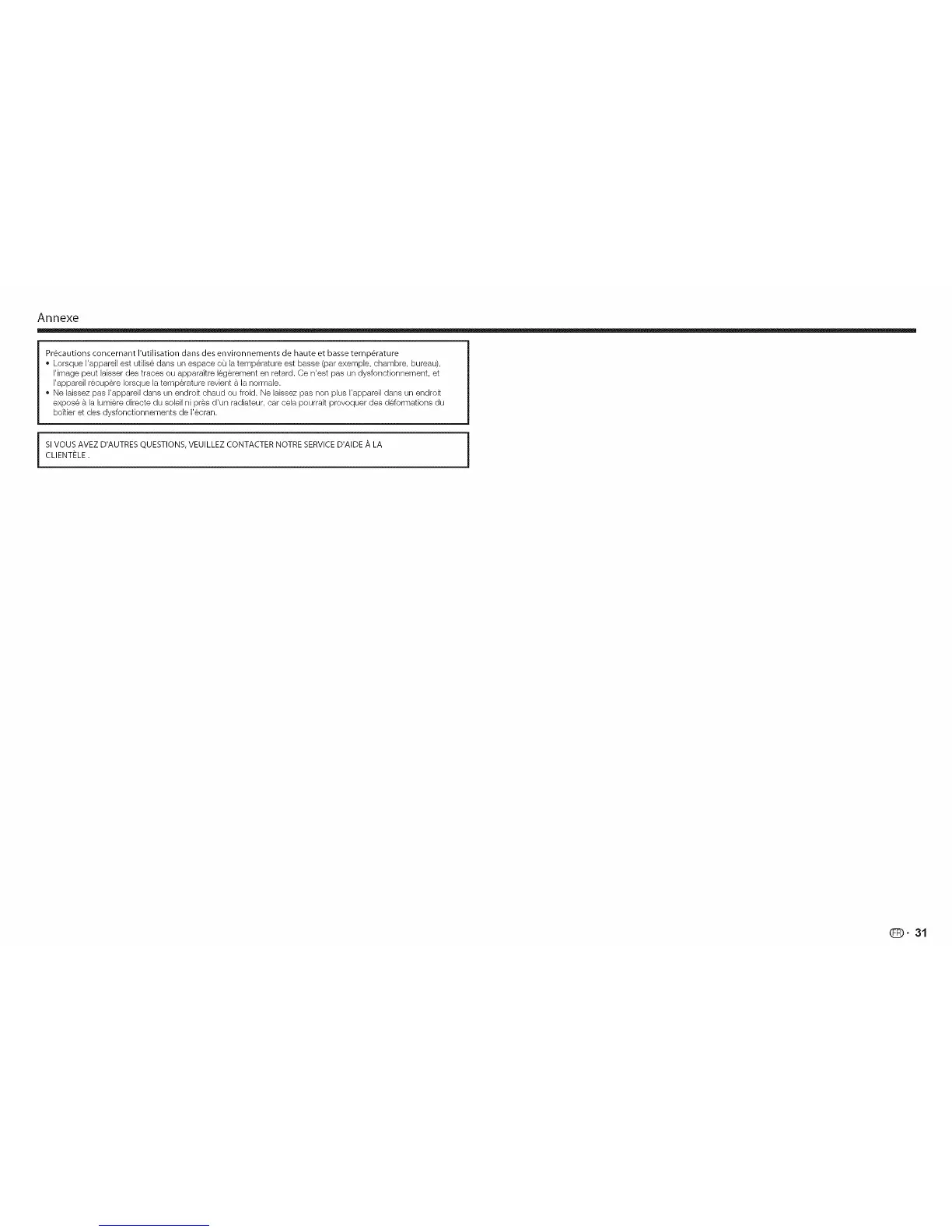 Pr6cautions concernant I'utilisation dans des environnements de haute et basse temp6rature