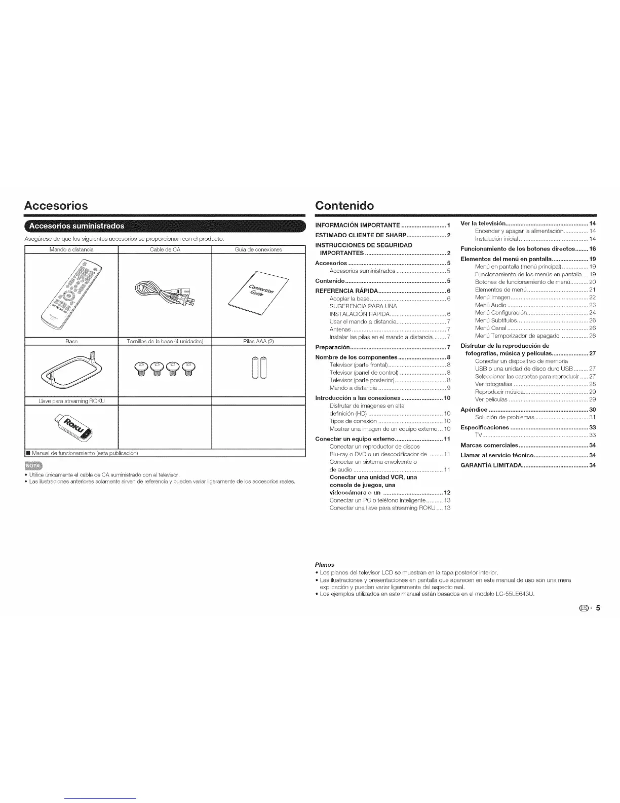 • Los planes del televiser LCD se muestran en la tapa posterior interior,