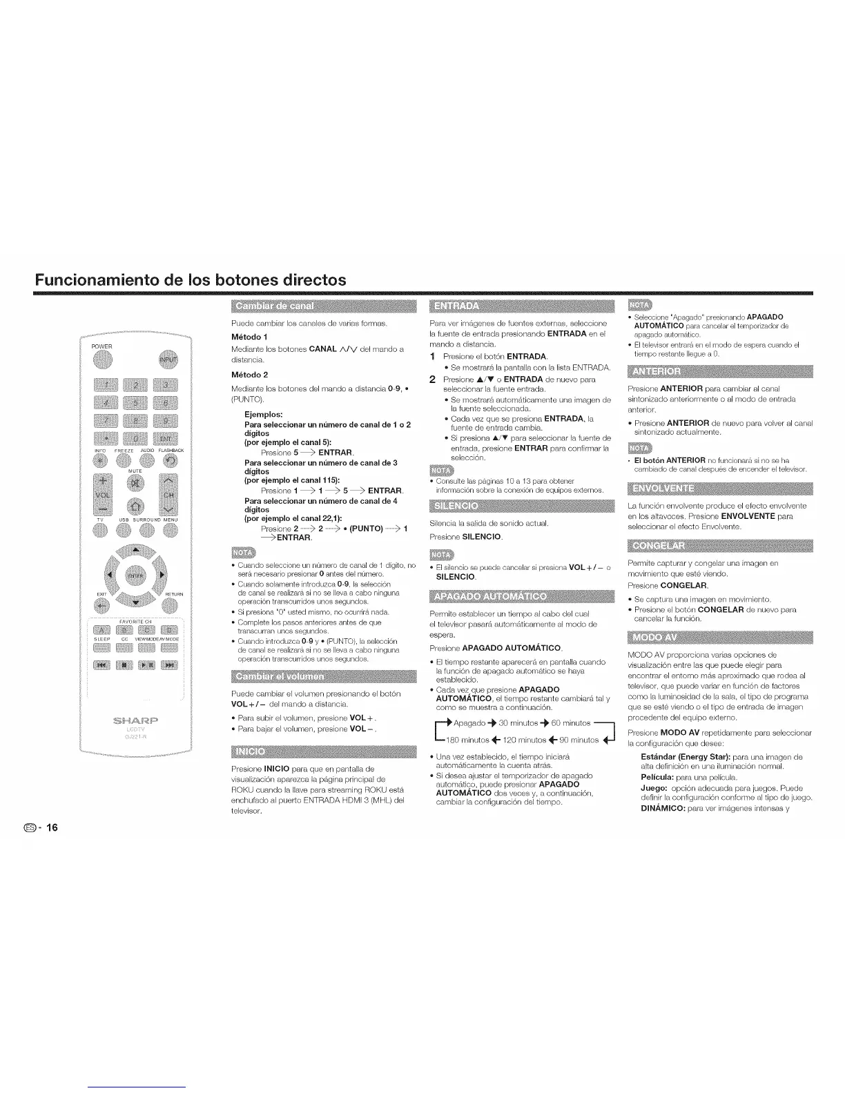 Mediante los botones CANAL/X/V del mando a