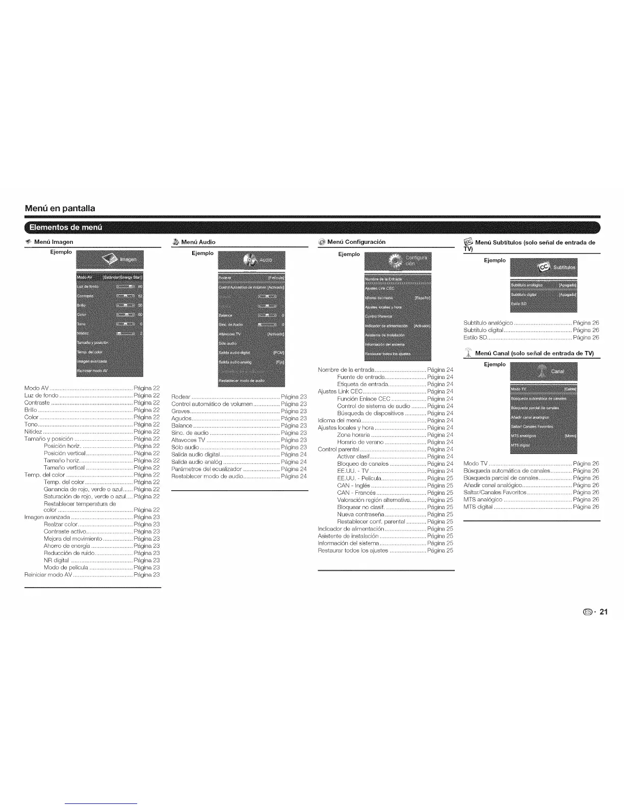 4: Menu Imagen _ Menu Audio _ Menu Configuraci6n _ Menu Subtitulos (solo sepal de entrada de