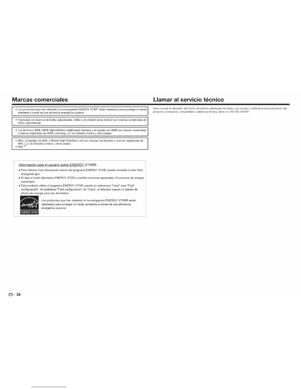 ambiente a trav6s de una eficiencia energ6tica superior, producto, accesorios, consumibles o asistencia tecnica, Ilame al 1-800-BE-SHARP.