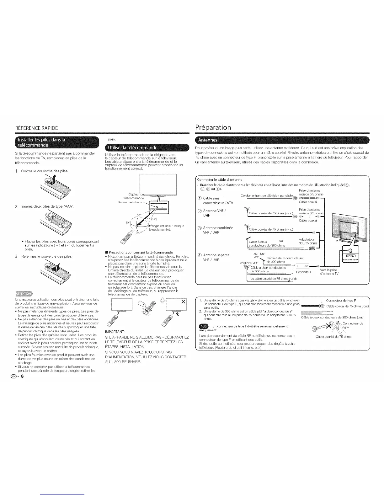 75 ohms avec un connecteur de type F, branchez-le sur la prise antenne _._I'arriF.re du televiseur. Pour raccorder