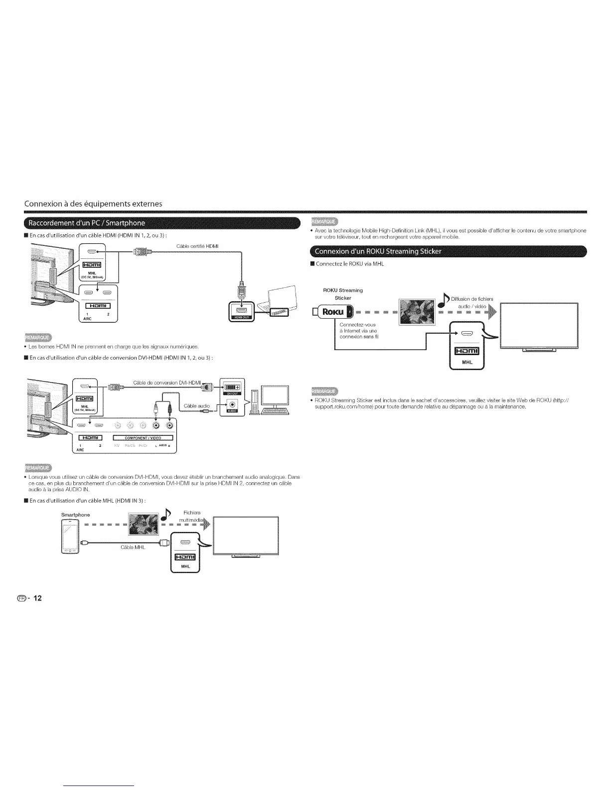 • Avec la technologie Mobile High-Definition Link (MHL), il vous est possible d'afficher le contenu de votre smartphone