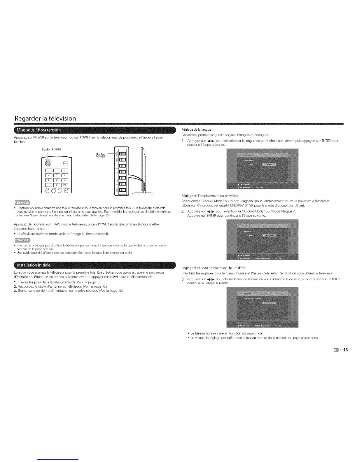 o L'installation initiale demarre une fois le tel6viseur sous tension pour la premiere fois. Si le tel6viseur a et6 mis