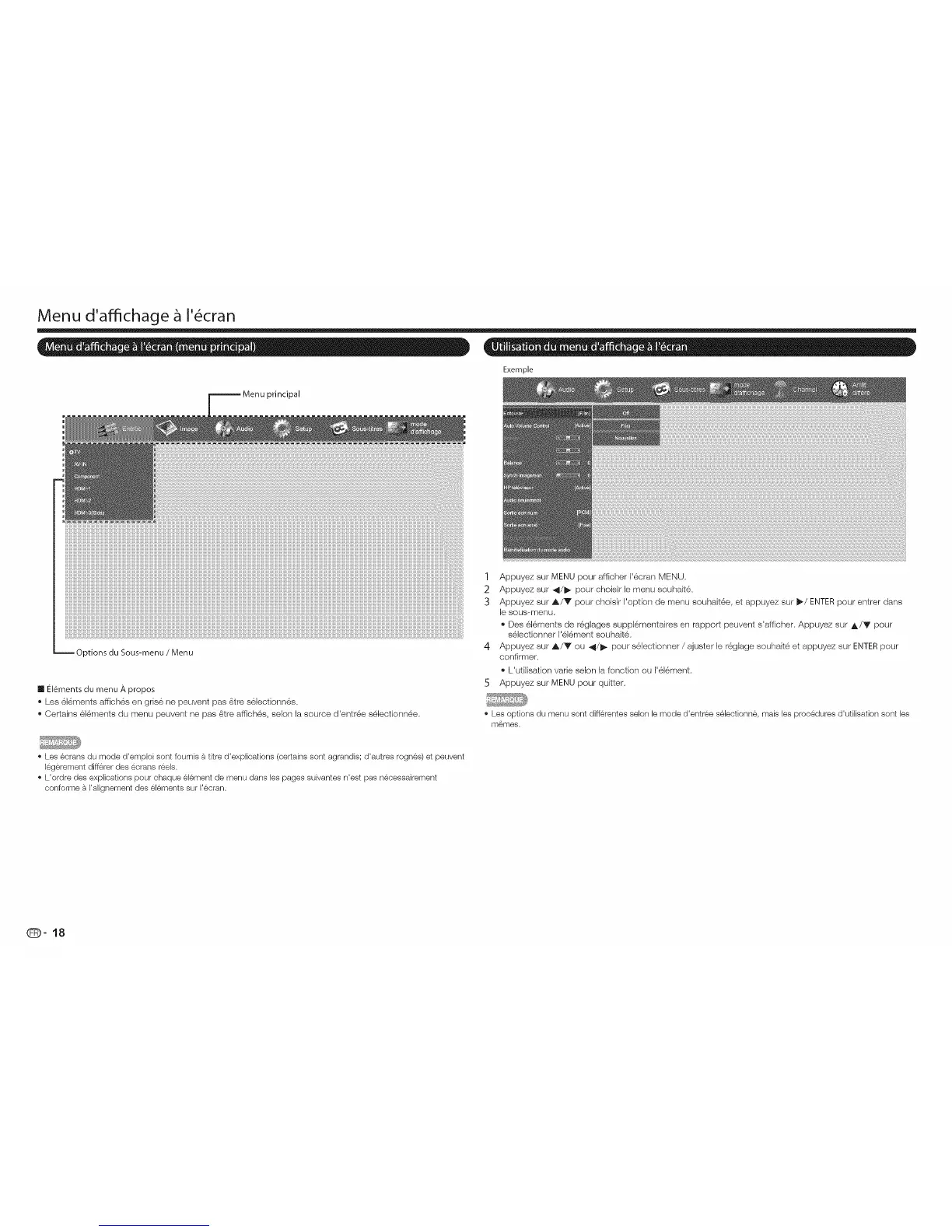 • Certains 616ments du menu peuw_nt ne pas 6tre affieh6s, selon la seume d'entr6e se'_lectionne'_e.
