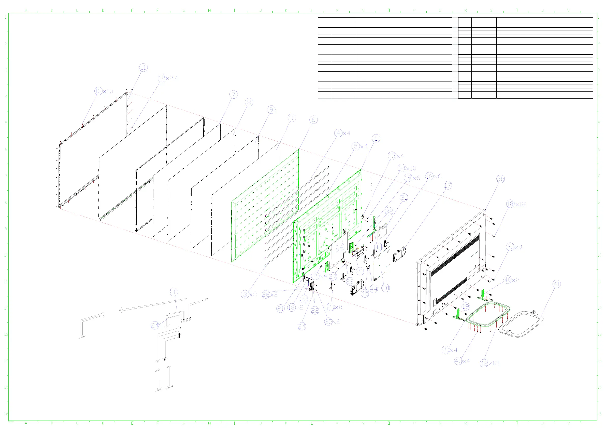 14 9LE194724001531 MYLAR(FRPP/370*320*0.5t)(BLK)(LC-65LE643U) 36 9LE046028510530 FFC 51P 450mm(1+PRO) G/F W/CONN(A10+AC) W31+AL(AA)+SPONGE(B)