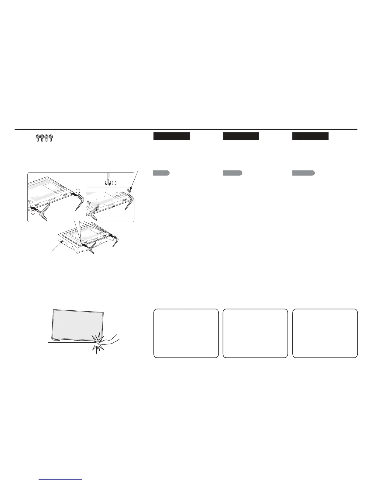 Attaching the Stand/Fixation du socle/Colocación del soporte