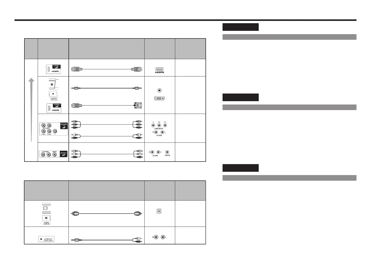 For connecting the TV to external equipment, use commercially available