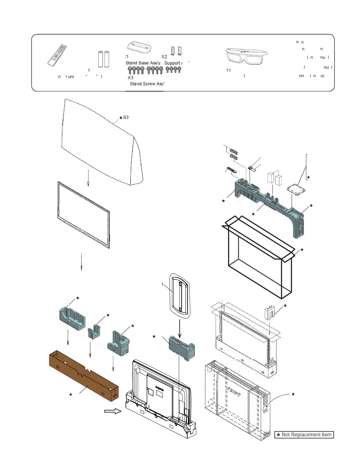 SUPPLIED ACCESSORIES/PACKING PARTS (LC-70LE650U/657U/C6500U) (NOT REPLACEMENT ITEM)