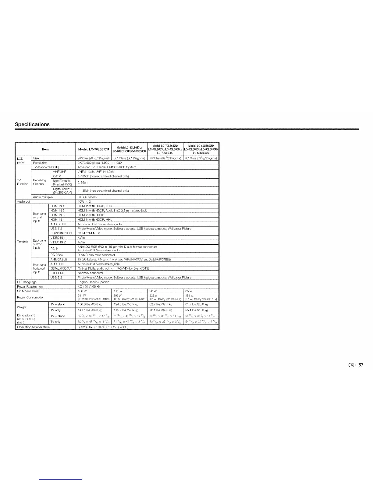 item Model: LC-90LE657U LC-70LE655U/LC-70LE650U/ LC-60LE655U/LC-60LE650U/