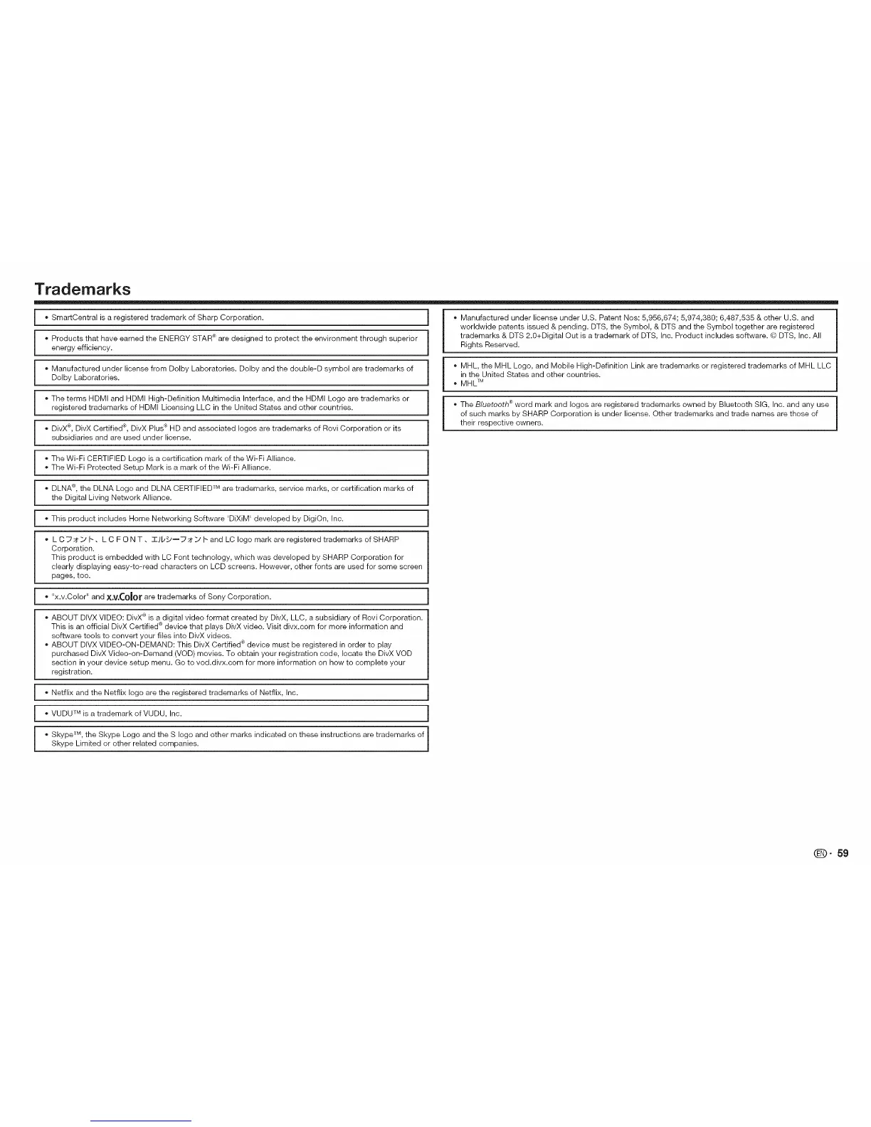 * SmartCentral is a registered trademark of Sharp Corporation. i * Manufactured under license under U.S. Patent Nos: 5,956,674; 5,974,380; 6,487,535 & other U.S. and i