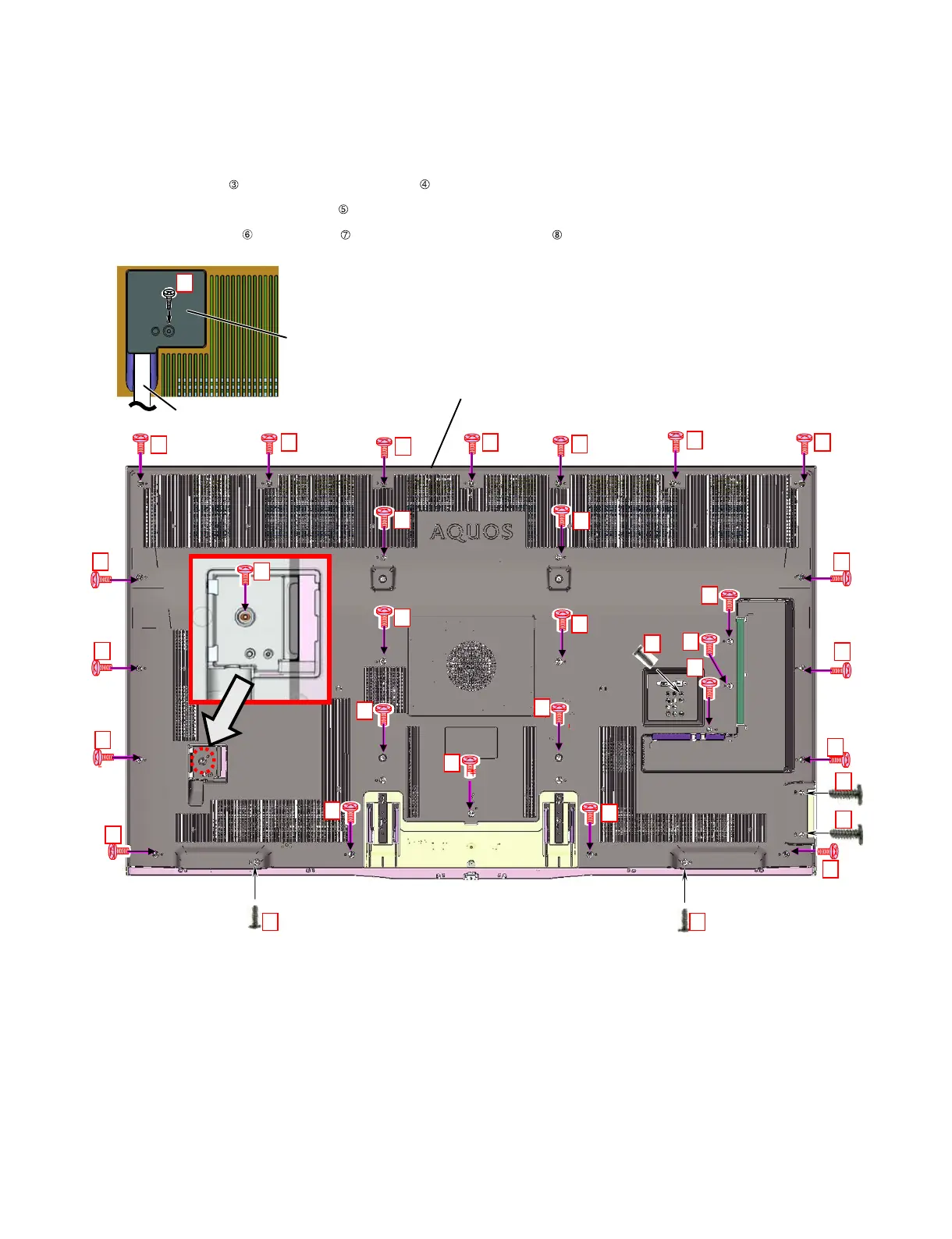 1. Remove the 1 lock screw and detach the Stand Safety Cover Ass'y. (LC-70LE857U)