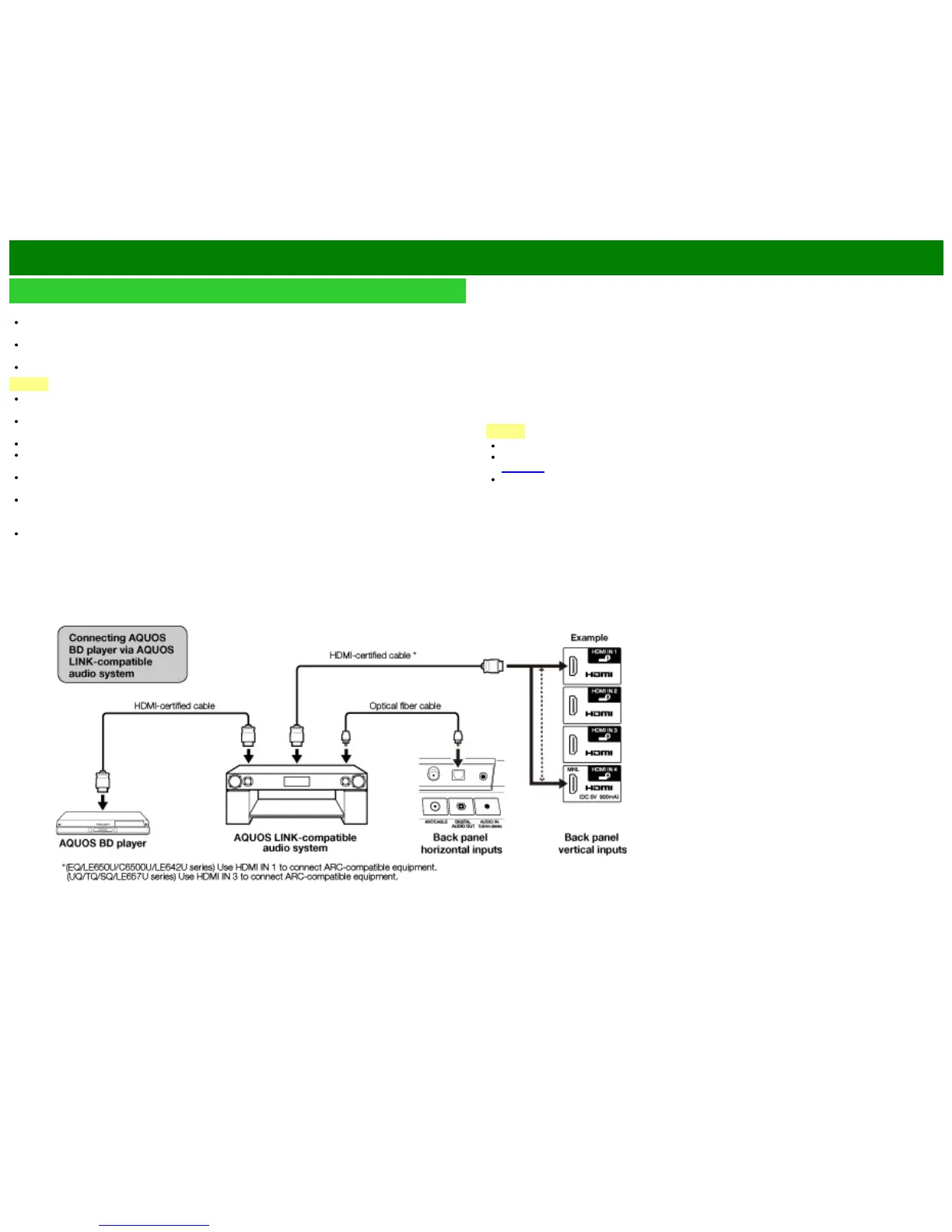 By connecting AQUOS LINK-compatible devices with HDMI-certified cables to the TV, you can