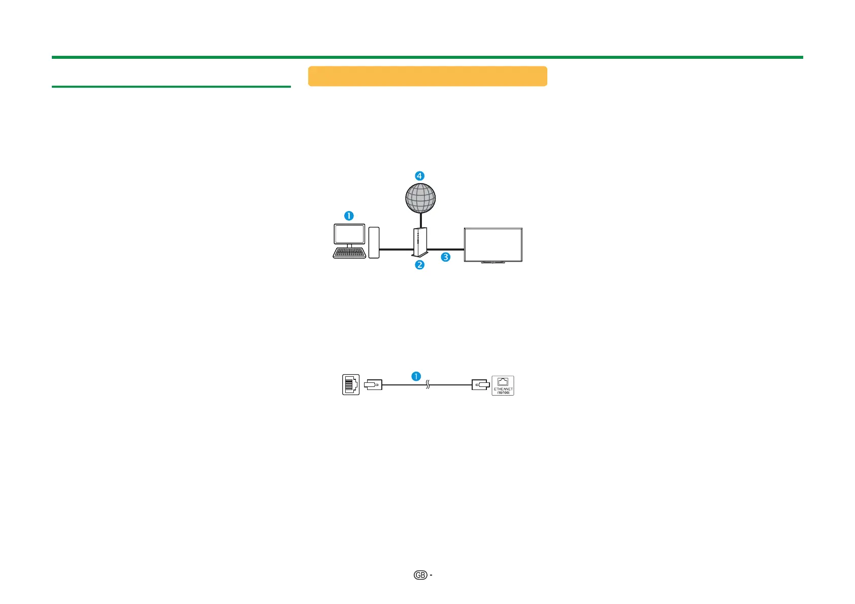 2 Connect the ETHERNET terminal on the TV