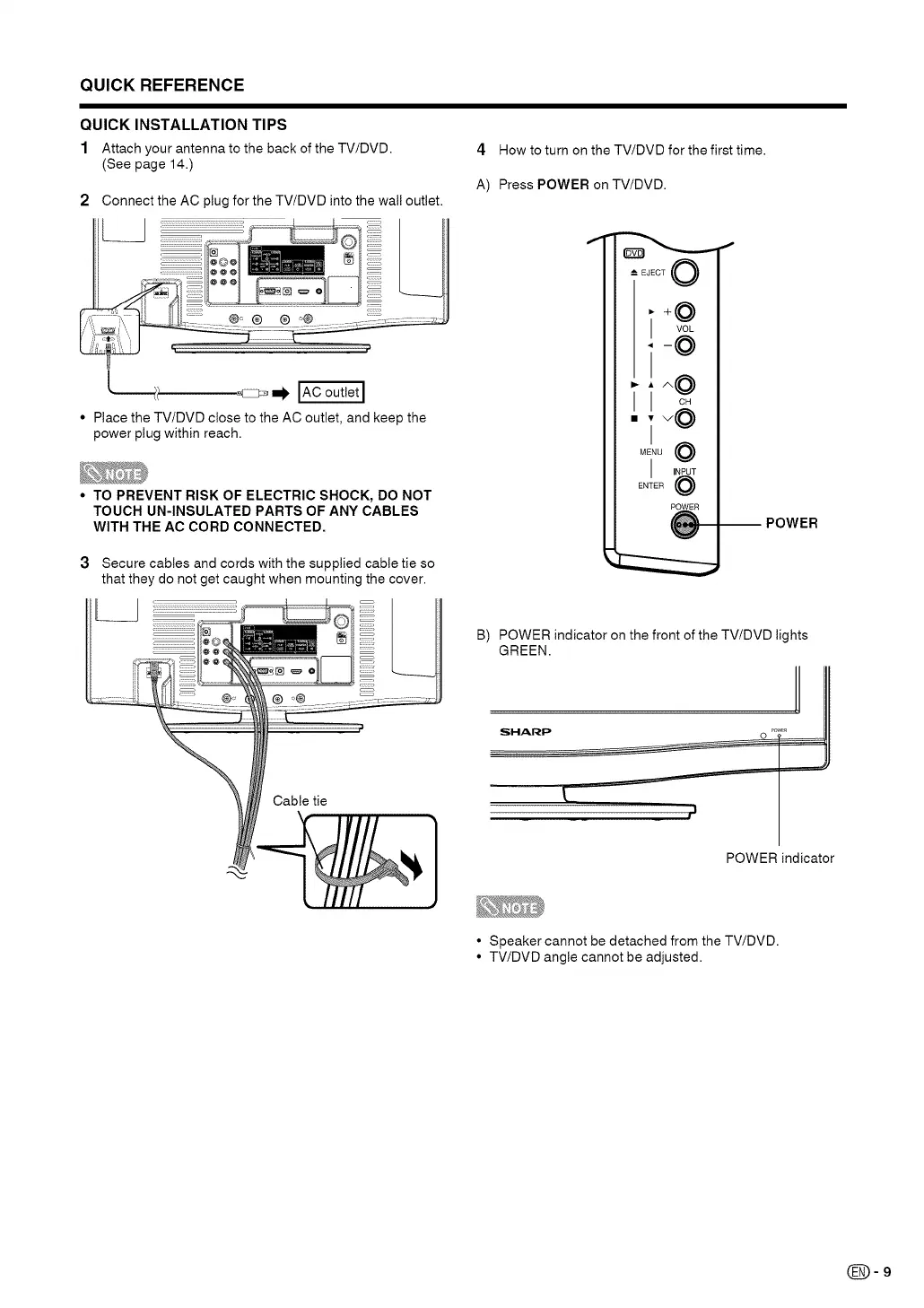 • Speaker cannot be detached from the TV/DVD.
