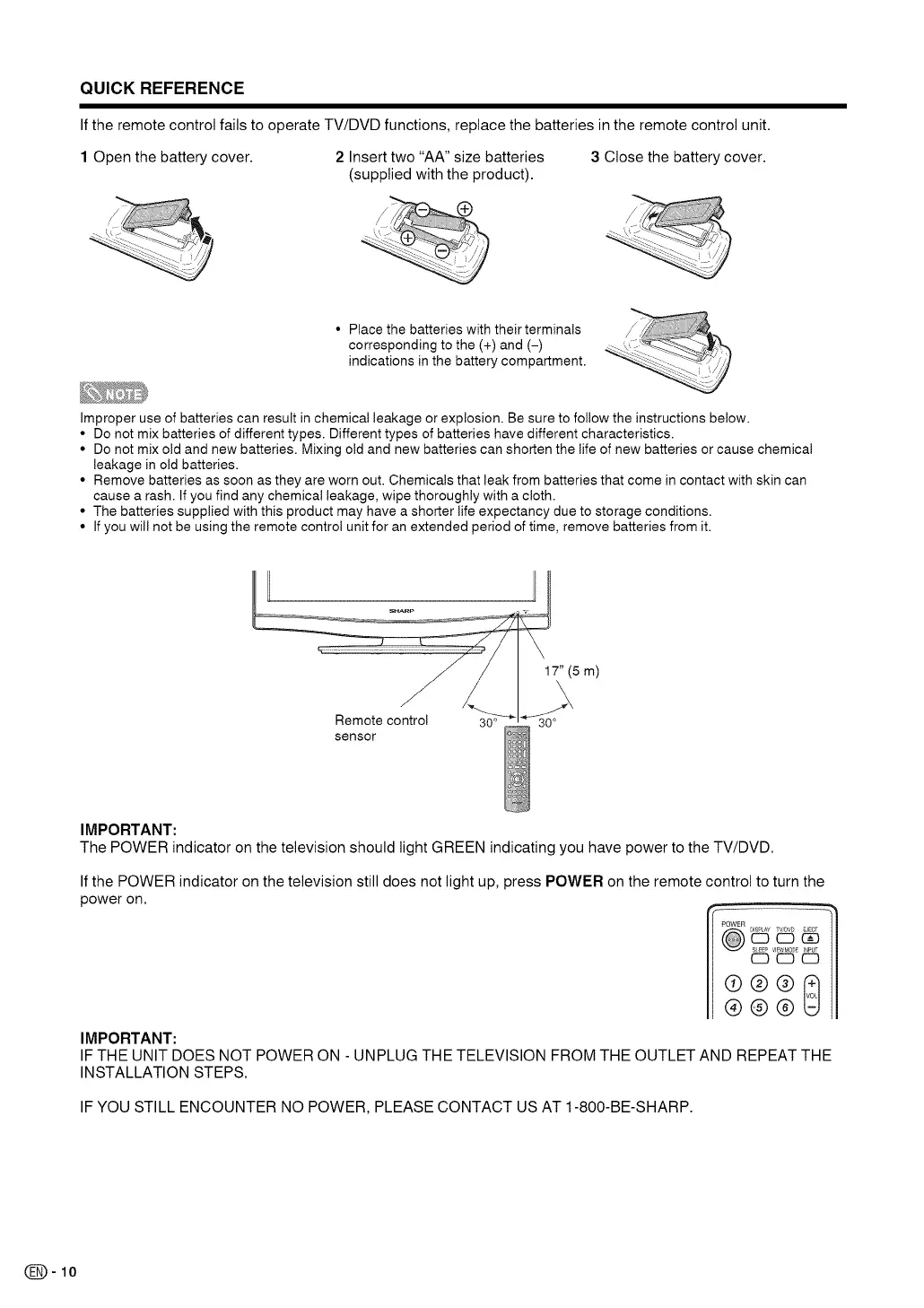 IF YOU STILL ENCOUNTER NO POWER, PLEASE CONTACT US AT 1-800-BE-SHARP.