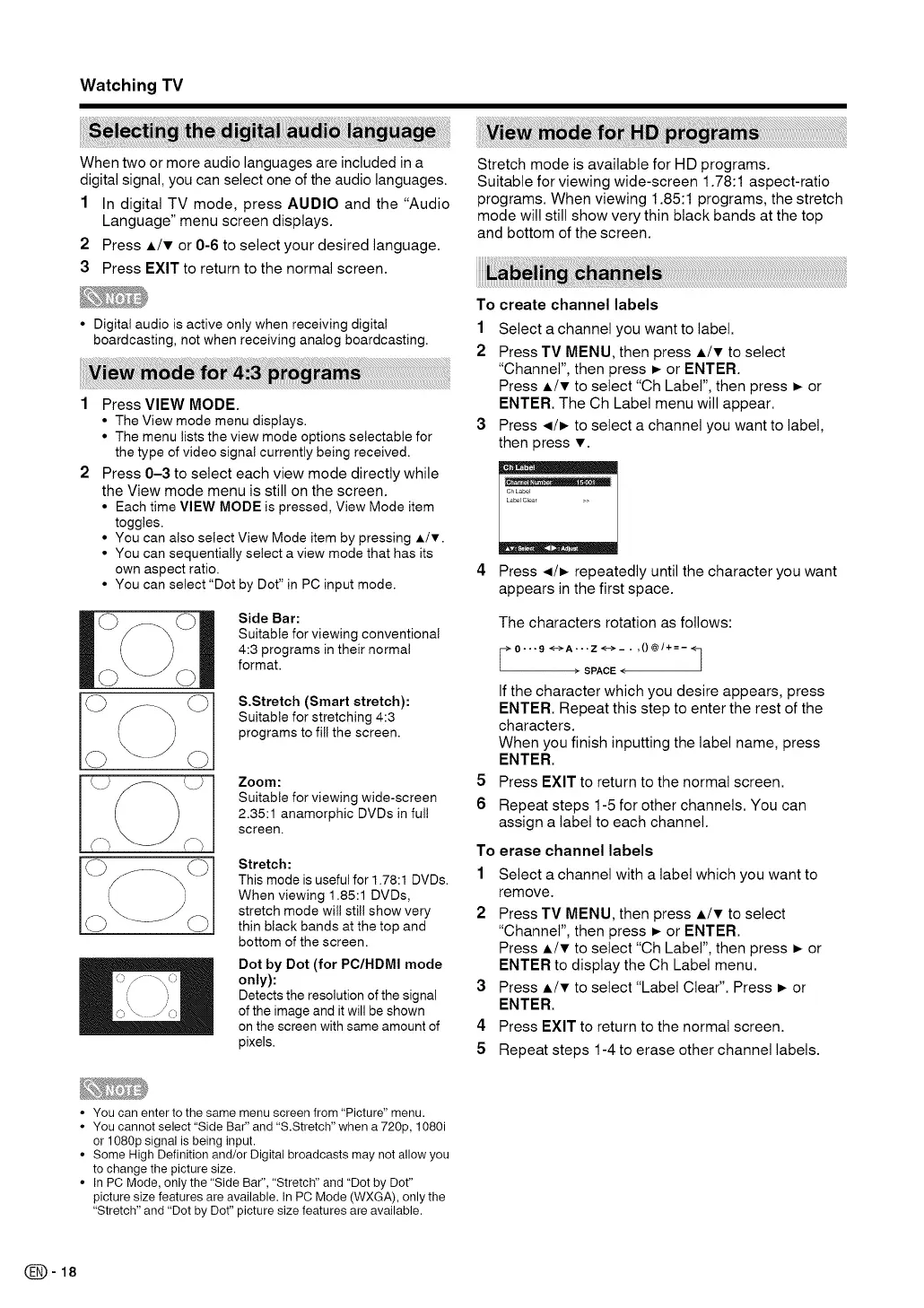 • In PC Mode, only the "Side Bar", "Stretch" and "Dot by Dot"