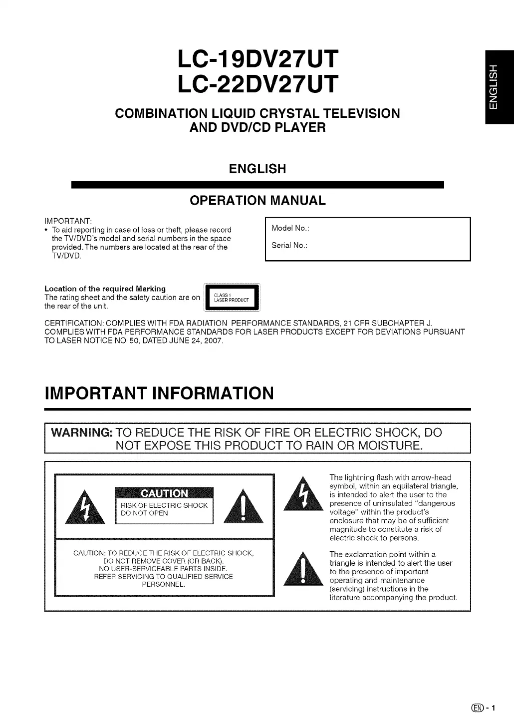 WARNING: TO REDUCE THE RISK OF FIRE OR ELECTRIC SHOCK, DO