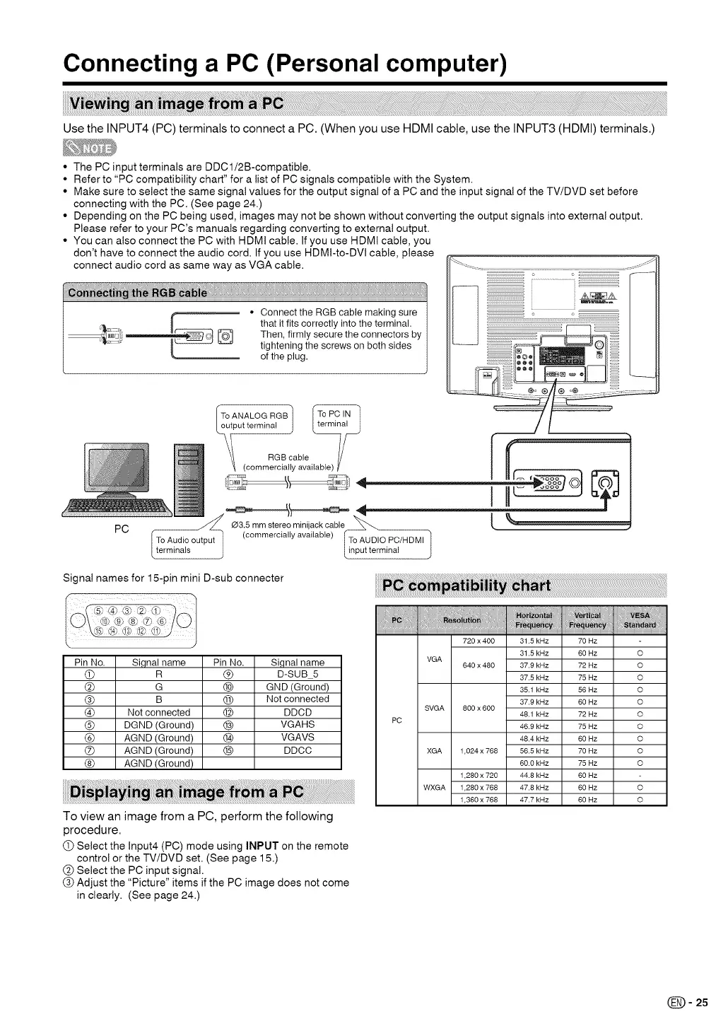 • Refer to "PC compatibility chart" for a list of PC signals compatible with the System.