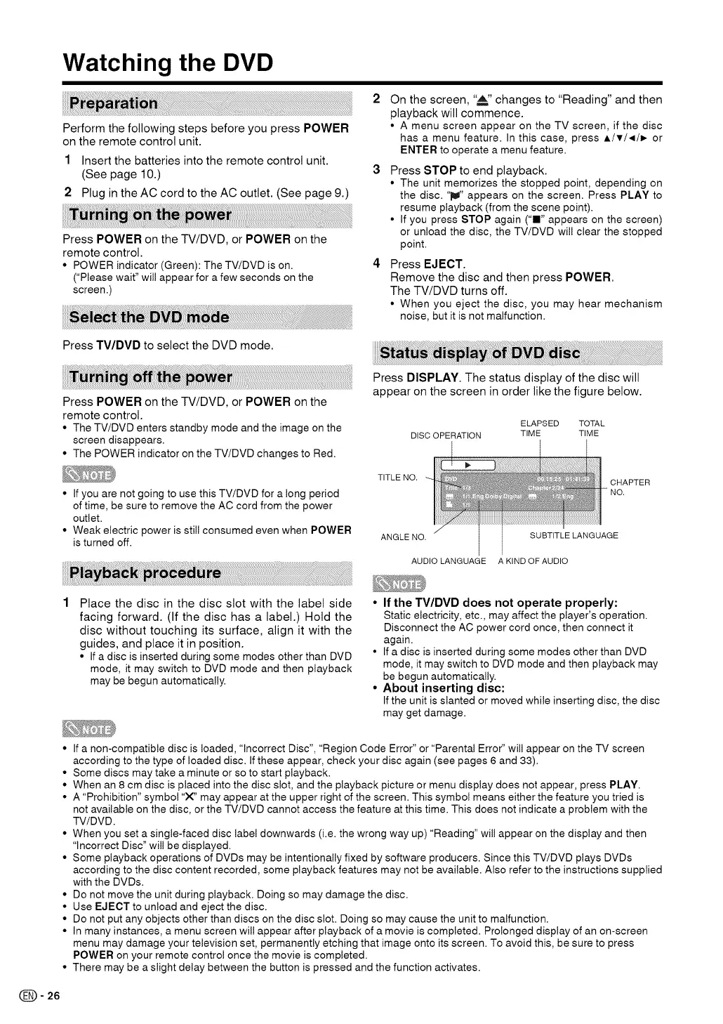 • Some playback operations of DVDs may be intentionally fixed by software producers. Since this TV/DVD plays DVDs