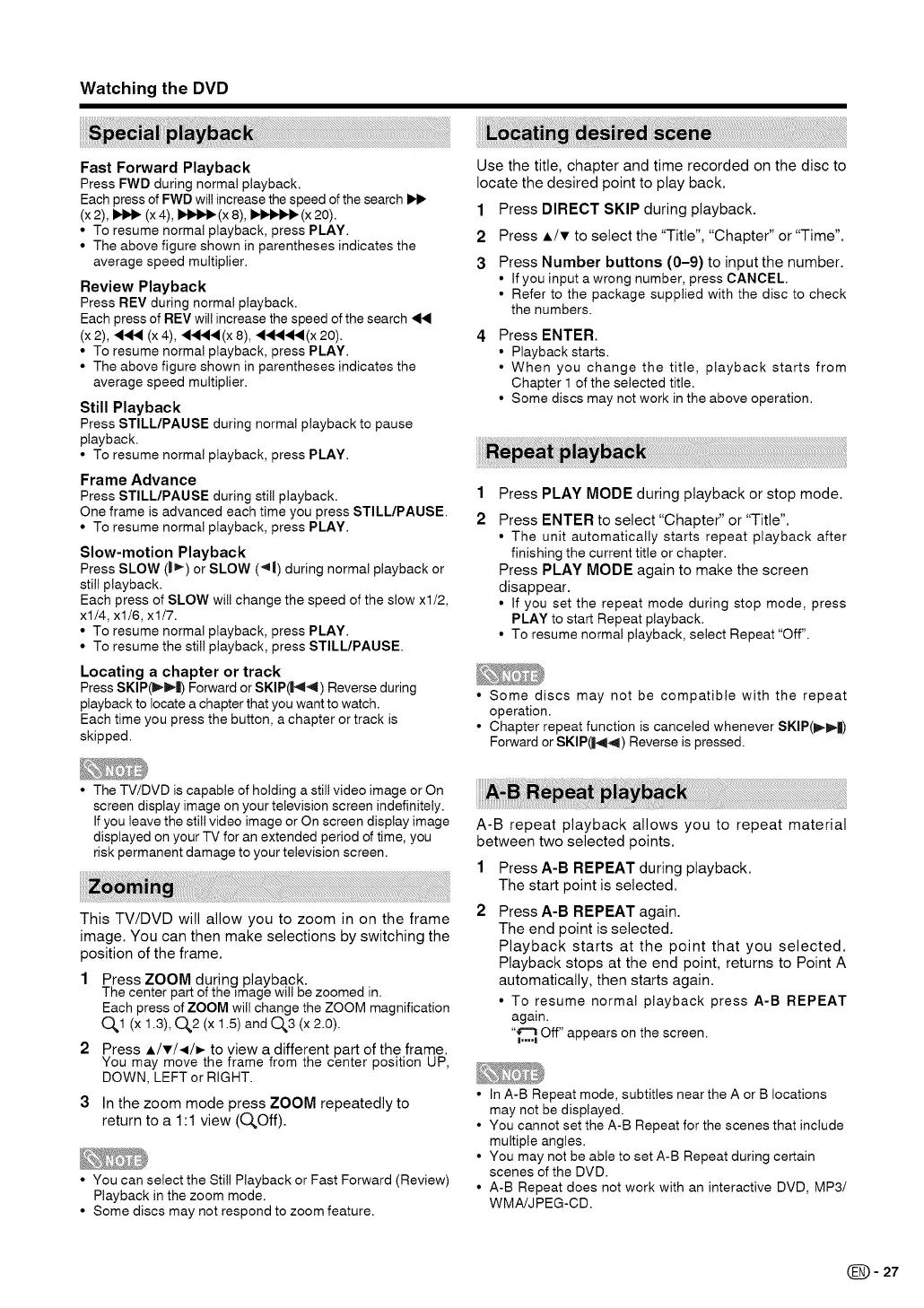 • Some discs may not respond to zoom feature.