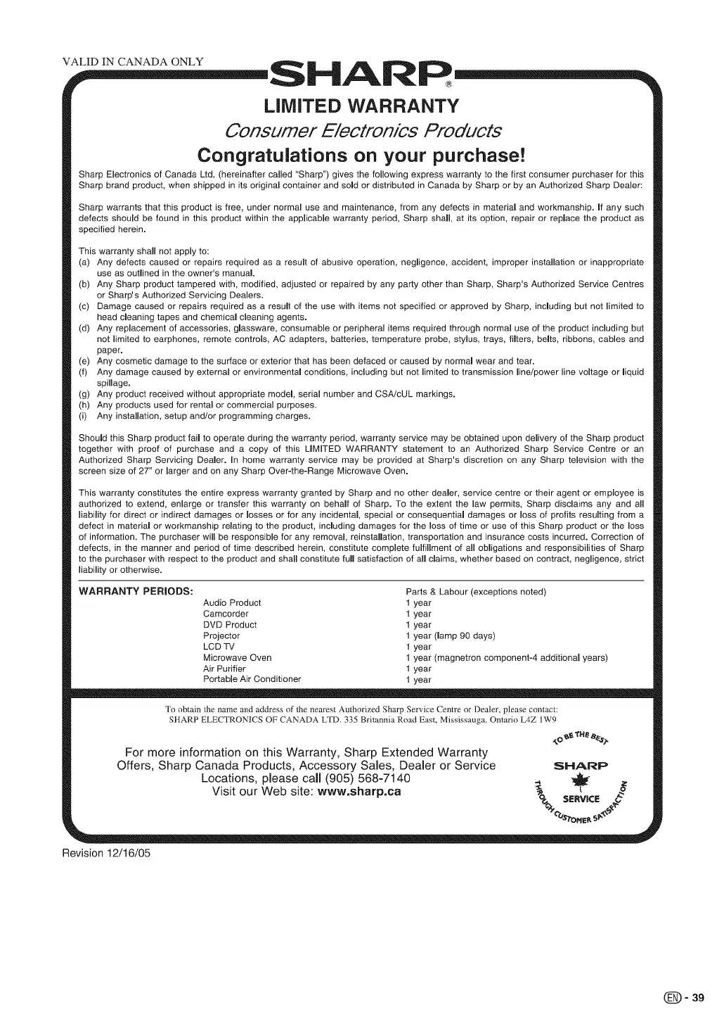 Visit our Web site: www.sharp.ca _._ SERVICE_,_