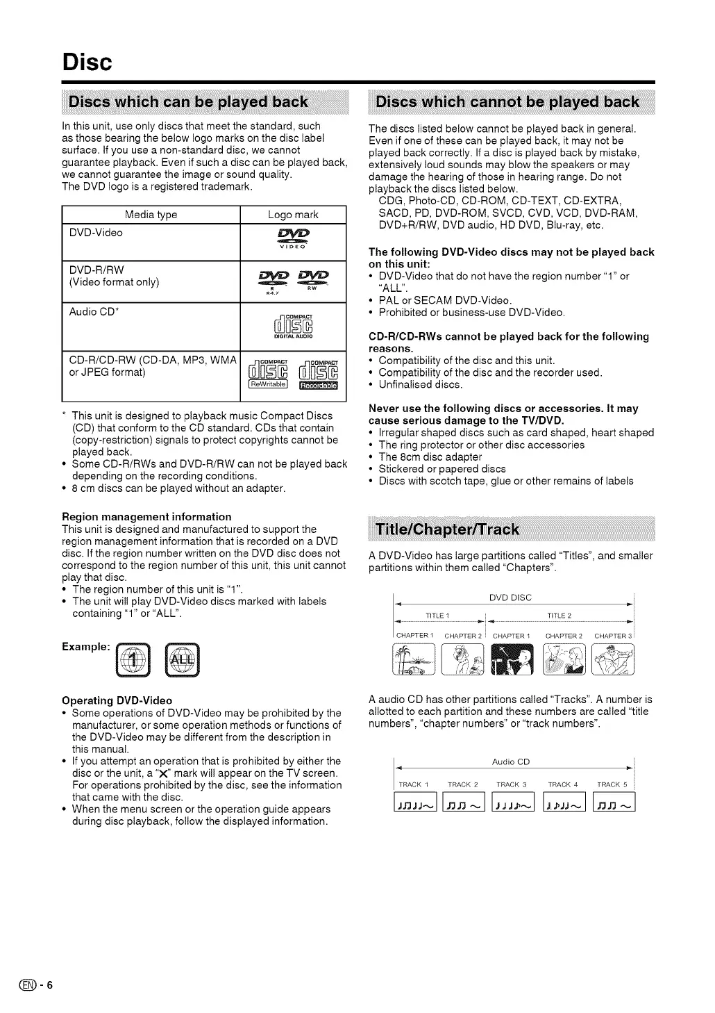 • Some CD-R/RWs and DVD-R/RW can not be played back
