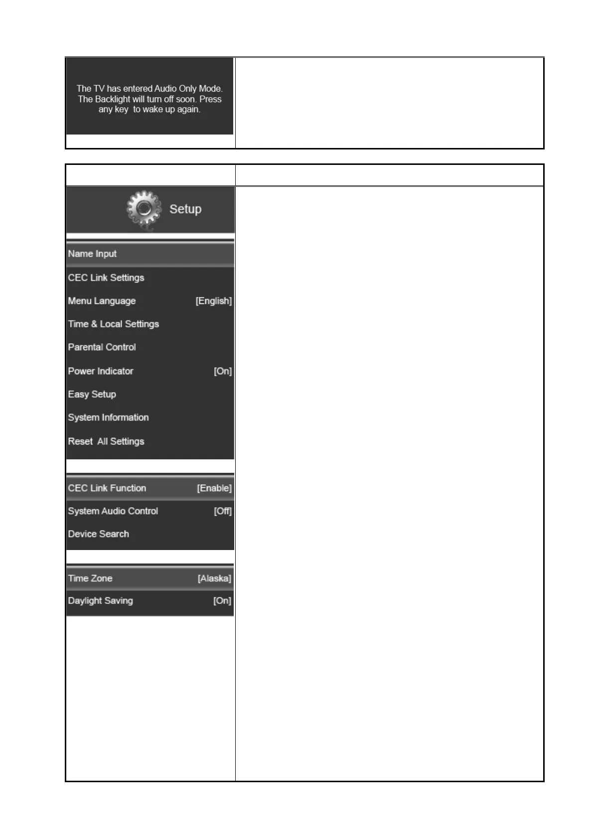 CEC LINK FUNCTION (Disable/ Enable)