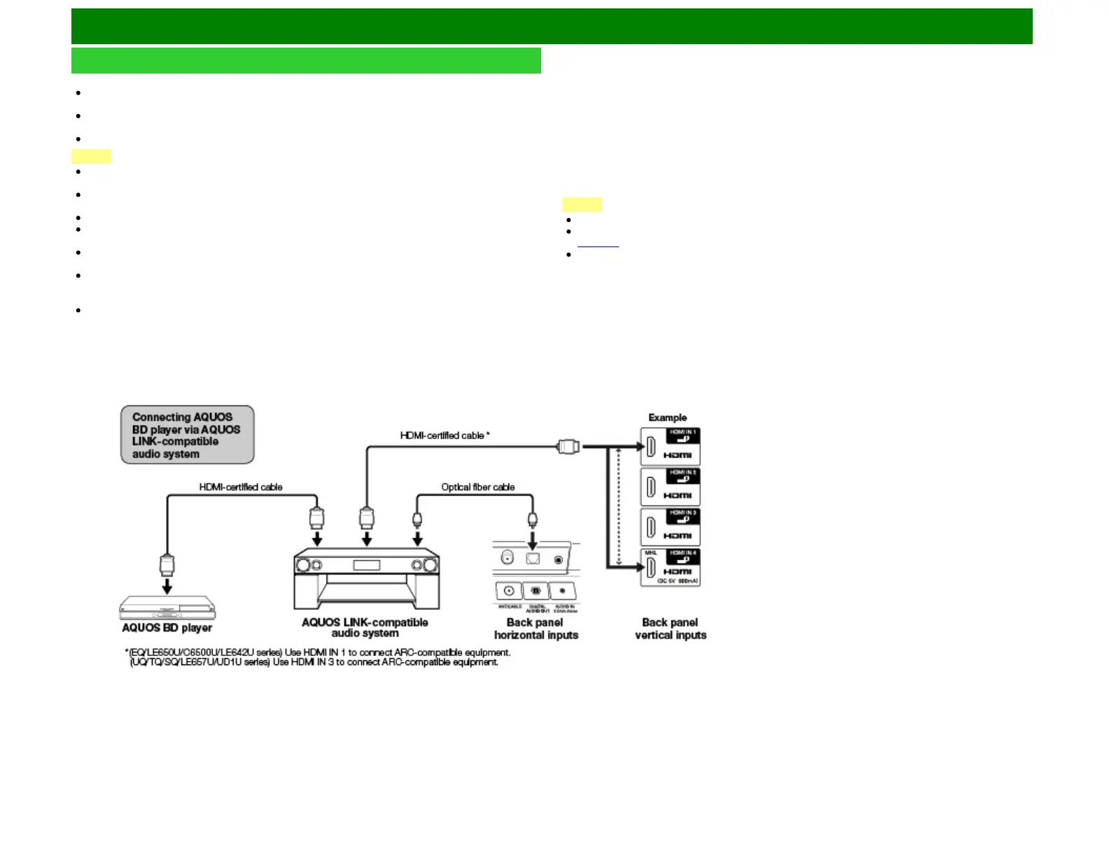 By connecting AQUOS LINK-compatible devices with HDMI-certified cables to the TV, you can