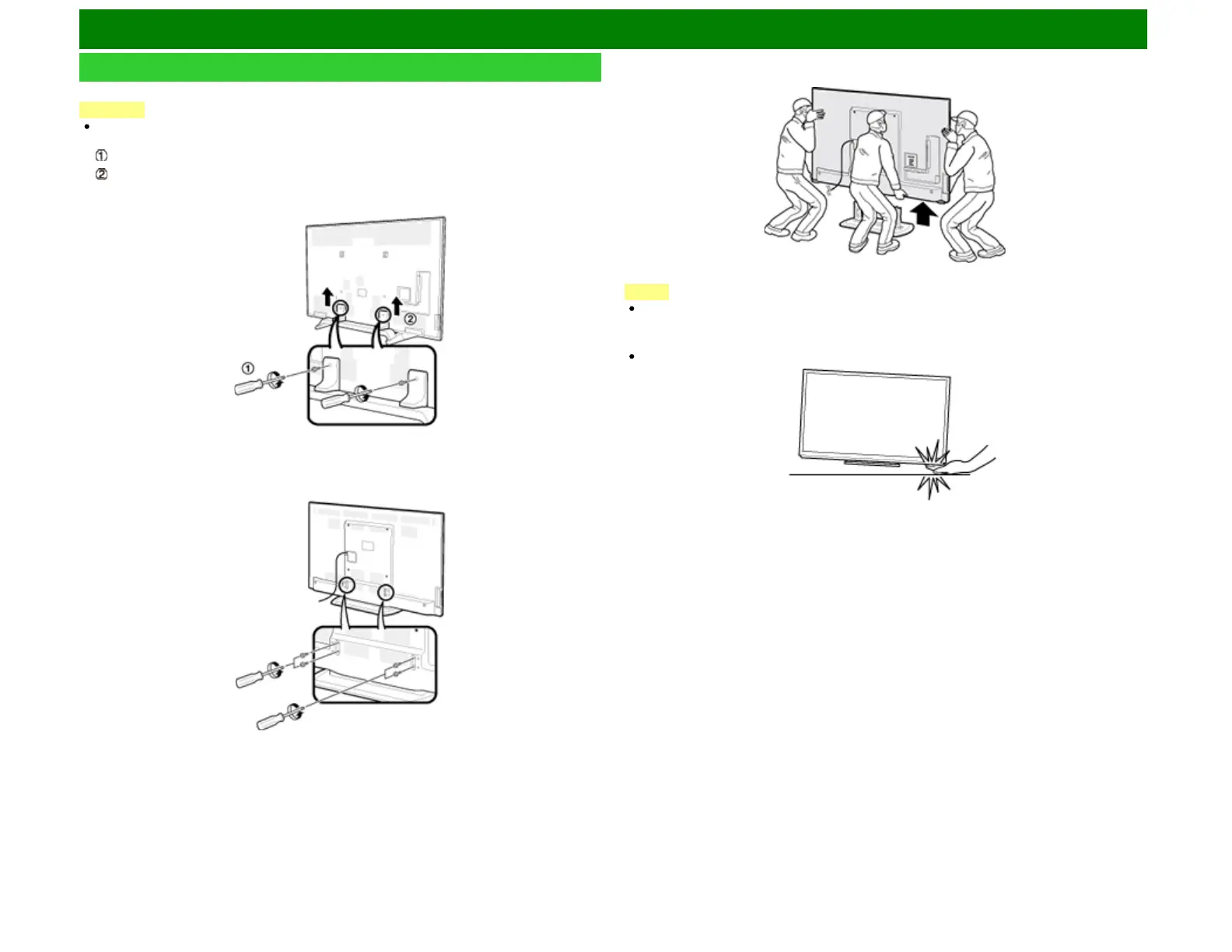 In the installation procedure, be careful not to catch your fingers between the TV set and the floor.