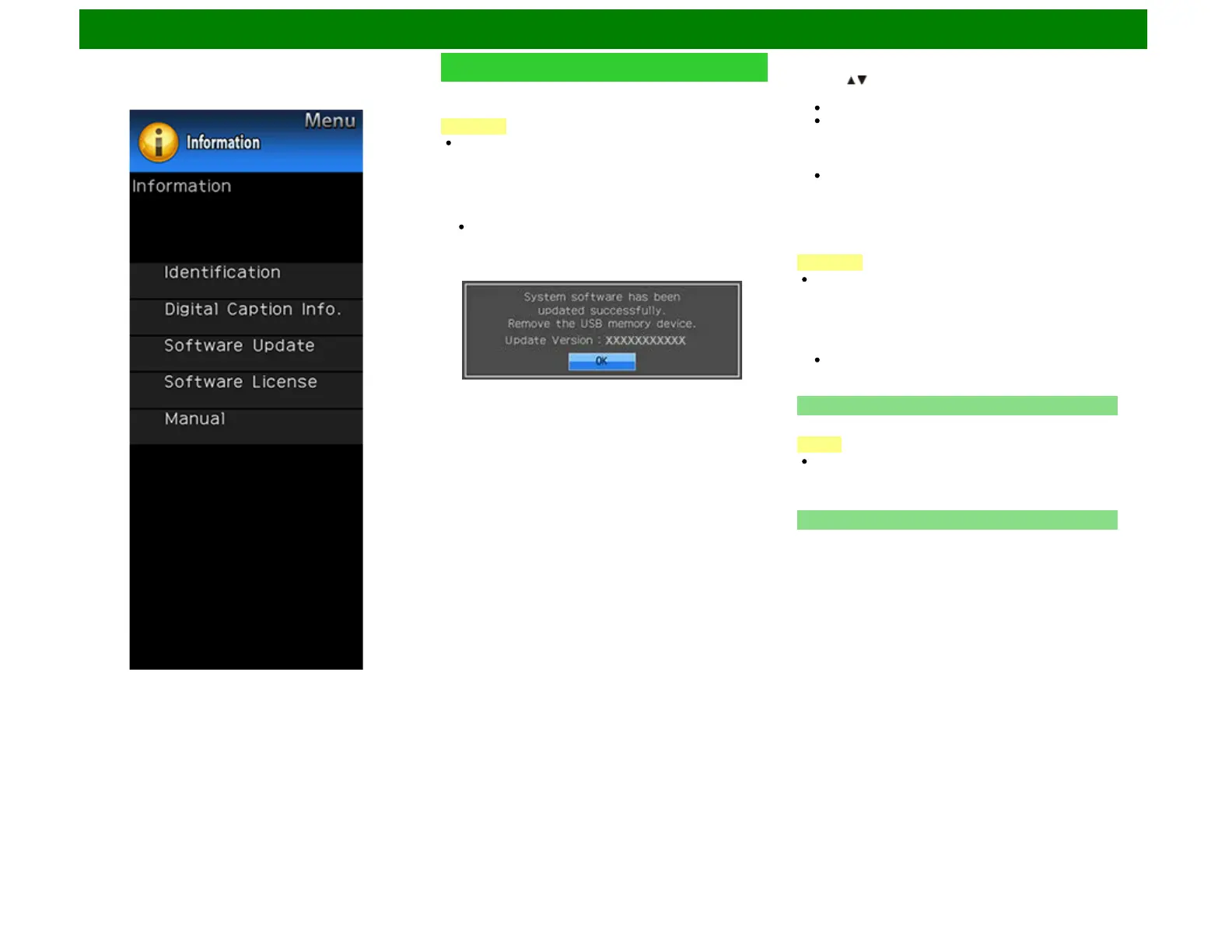 4 When the software is successfully updated, a screen is