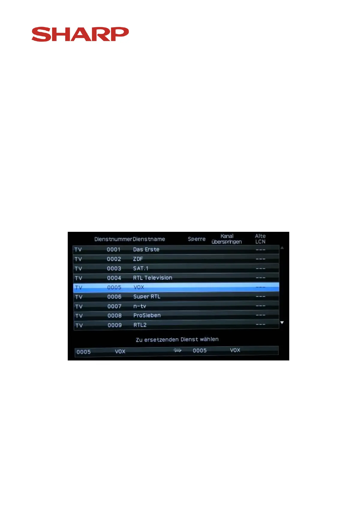 the „B“ (blue) button you can mark the channel (e.g. VOX). The following