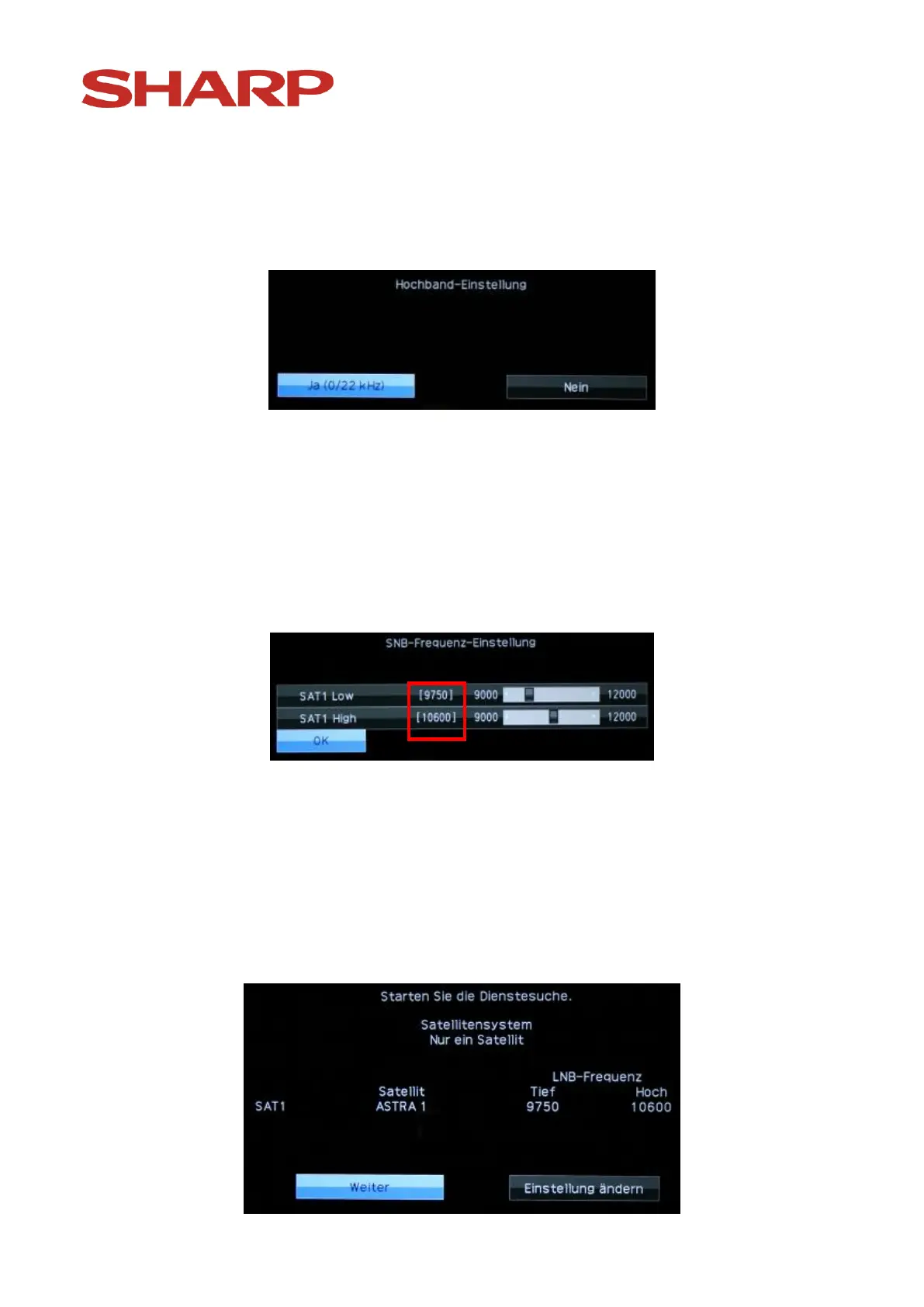 LNB confirm the displayed settings by pressing the „OK “-button on the